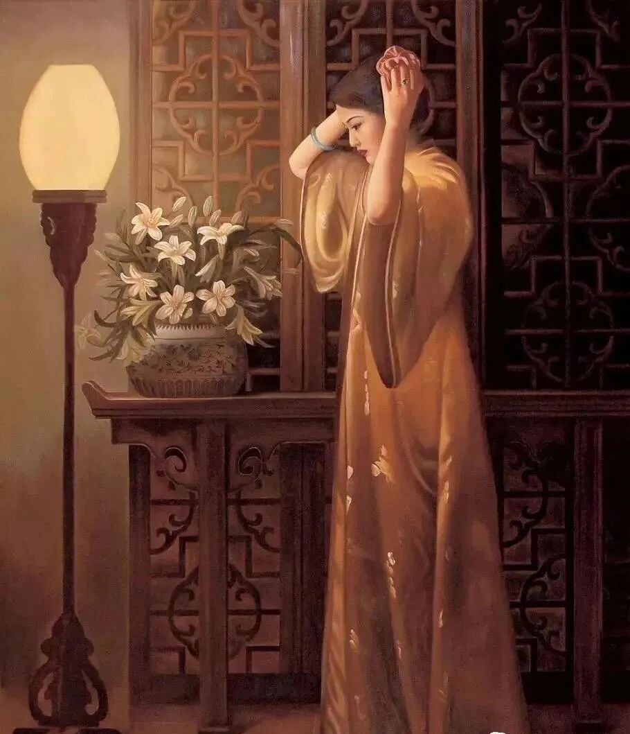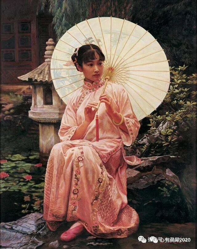 在描绘江南女子的作品中,人物形象多是大家闺秀,画面宁静平和,在写实主义中渗透着中国传统的美感!他运用西方艺术的绘画技巧,赋予人物形象于传统的中国精神,两者结合,中西合璧,具有了与众不同的神韵!