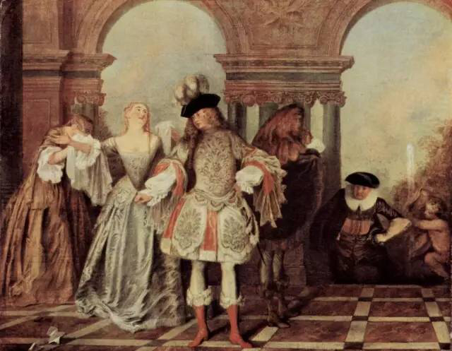 华多曾师从装饰画家奥德朗三世,后受到巴洛克大师鲁本斯色彩技巧的影响!他的成名作是《舟发西苔岛》,曾先后画过三幅,以此画成为法国皇家美术学院院士,也获得了“华丽庆典”的称号!