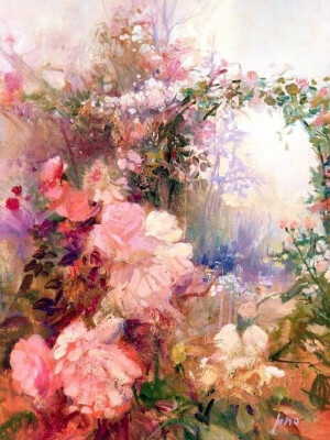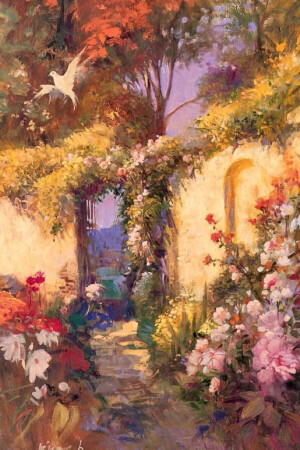 除了闺房内闲适的美人,还有阳光下繁花似锦的花园景观,如果家里有院子,也可以按照画家刻画的这种风格设计一下!