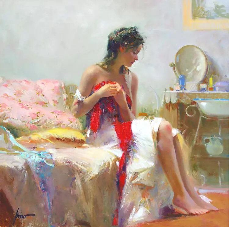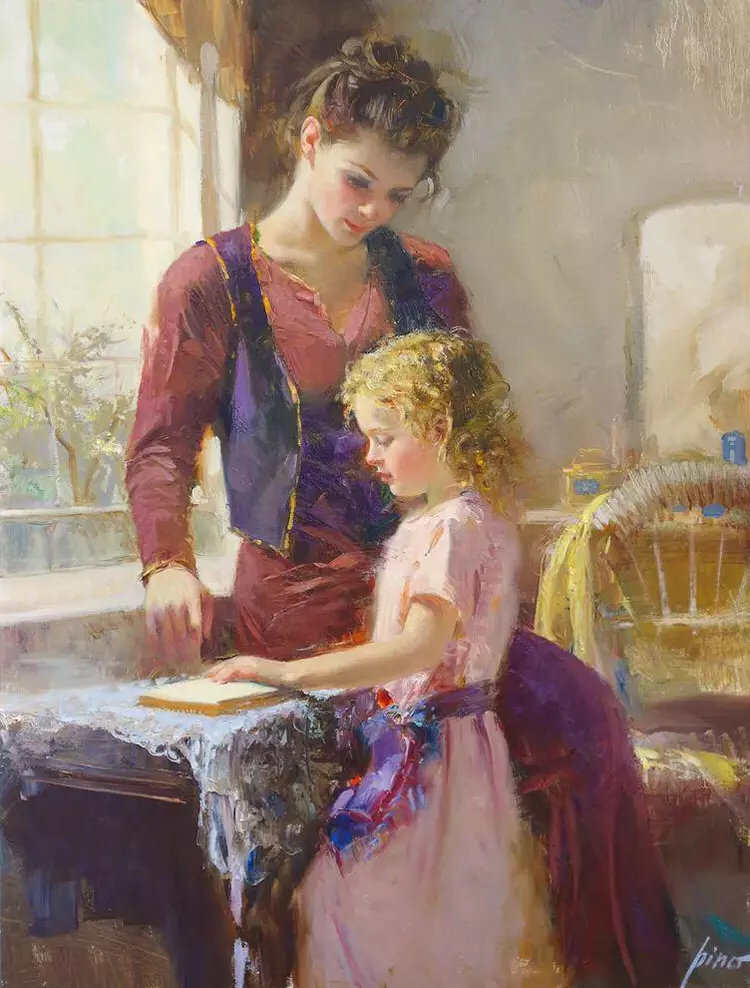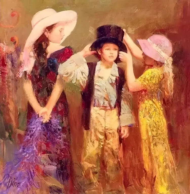 皮诺的画作,他笔下优雅知性仪态万方的少妇,还有乖巧的儿童,五彩缤纷的大花园,给观者创造了一个祥和温馨的美好世界!