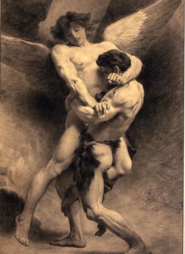 这幅是里欧•博纳创作的宗教画《雅各与天使摔跤》