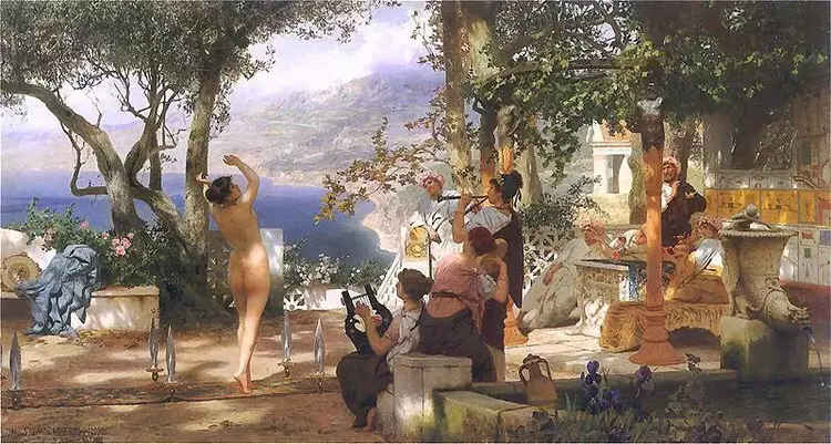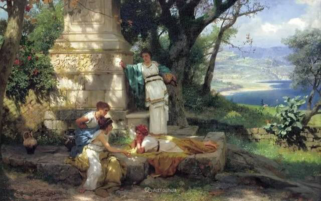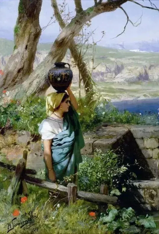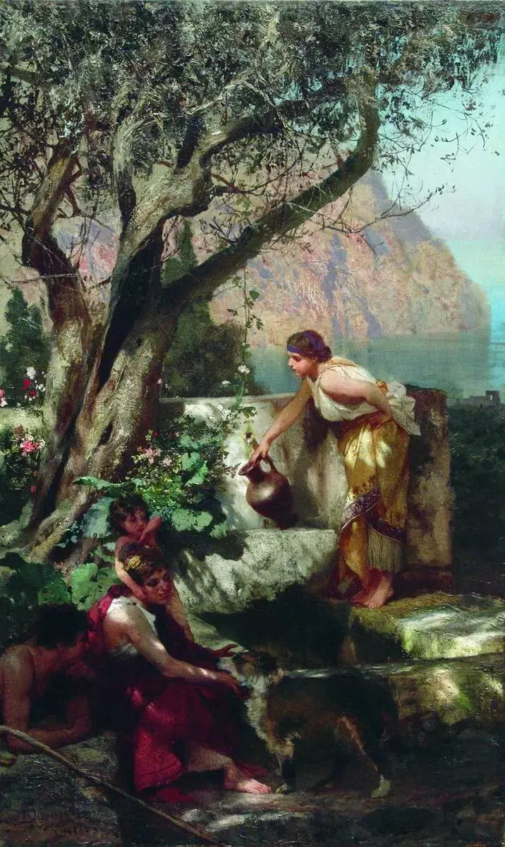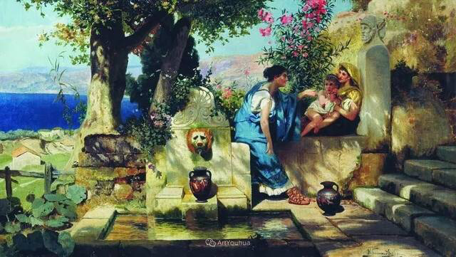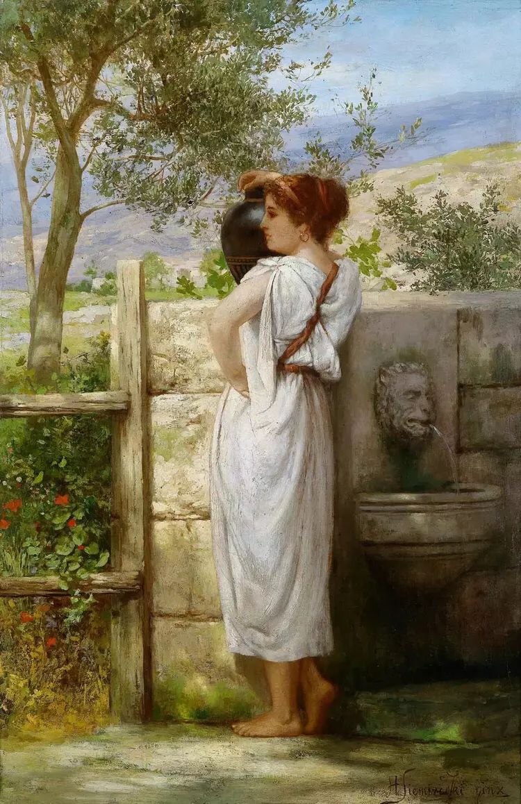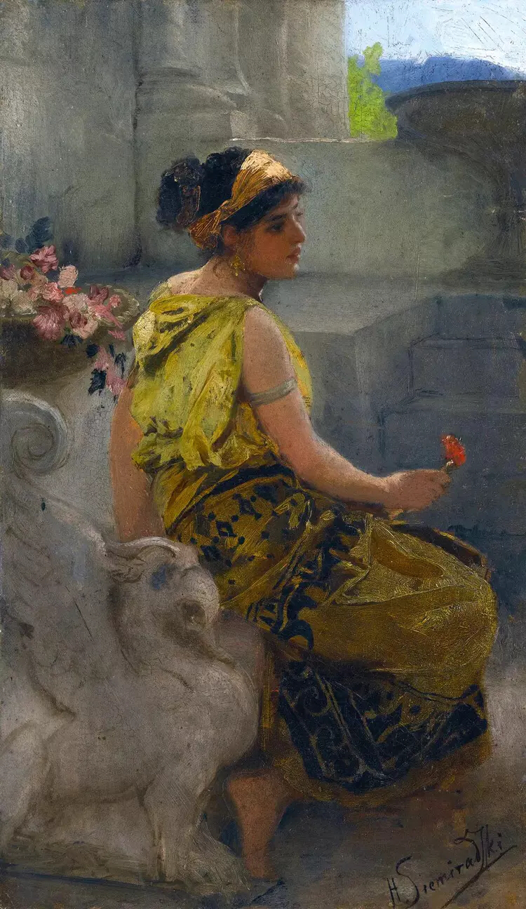 亨利克·谢米拉兹基,出生于贵族家庭,一位出生于俄罗斯的波兰画家!他的绘画题材主要是以希腊罗马历史、神话为主,还有景物、肖像画等,应该属于新古典主义风格!