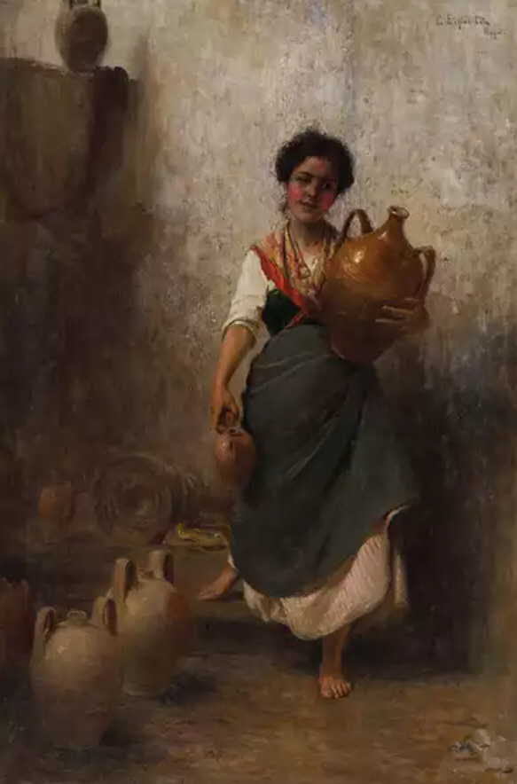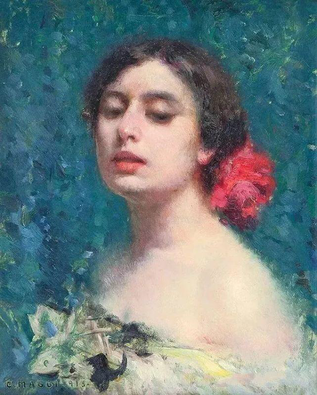 这是画家描绘那不勒斯底层人民的作品,也说明了他对底层的关注和同情心!为了生计,他还画了很多女性肖像画!