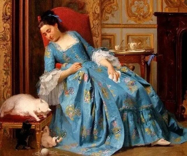 那时候的贵妇人生活方式,真是太令人羡慕了!每天做的事情就是穿着绫罗绸缎,照照镜子,梳洗打扮!然后读几页书,花园里采几束花,或者逗逗猫狗、喝喝茶之类的消遣!