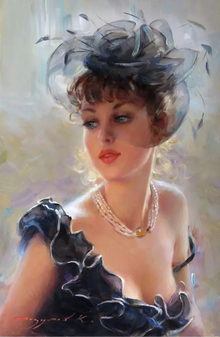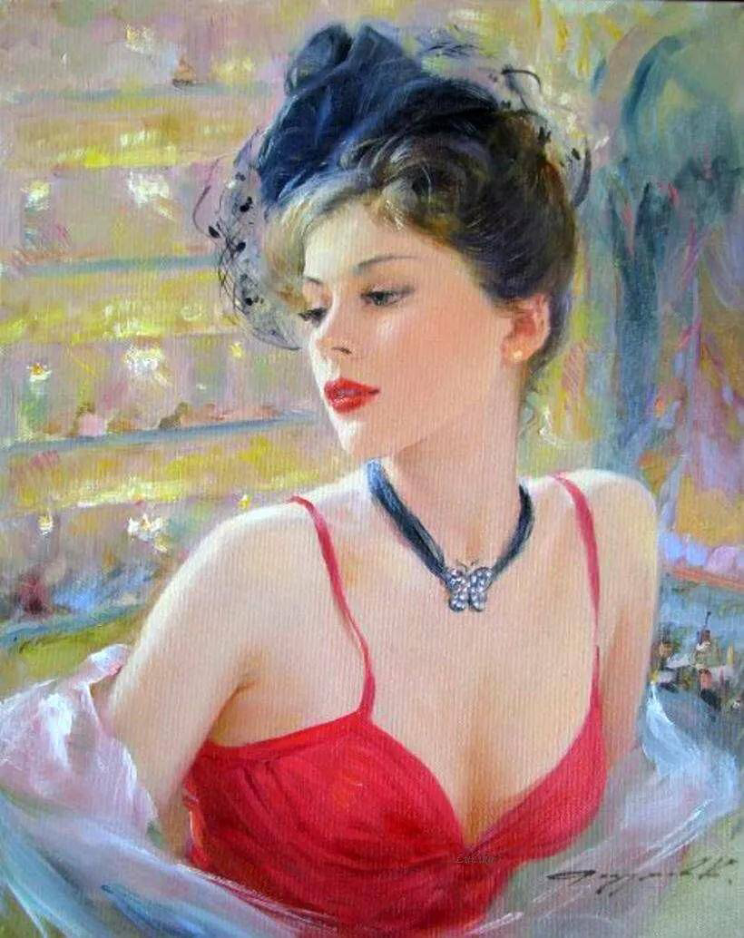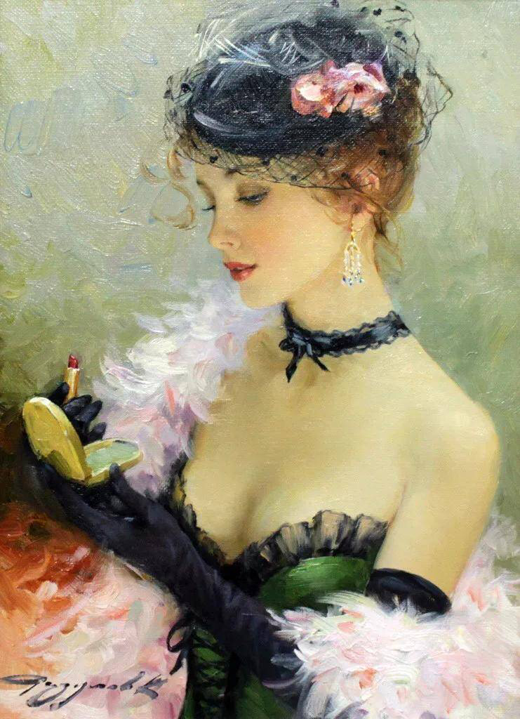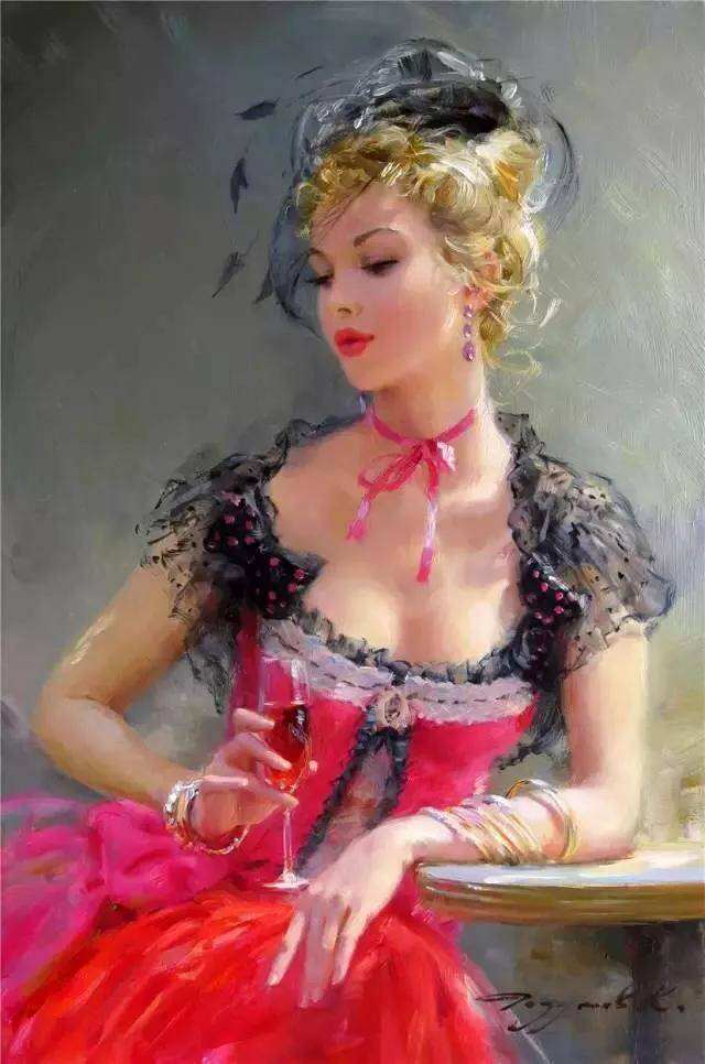 拉祖莫夫笔下的乌克兰女性,既有西方女子的性感大胆妖媚,又有东方女子的含蓄端庄典雅!看到这些盛装出场、走在画布上的时尚美女,使小编想起了上海滩百乐门歌舞厅的那些舞女、交际花!