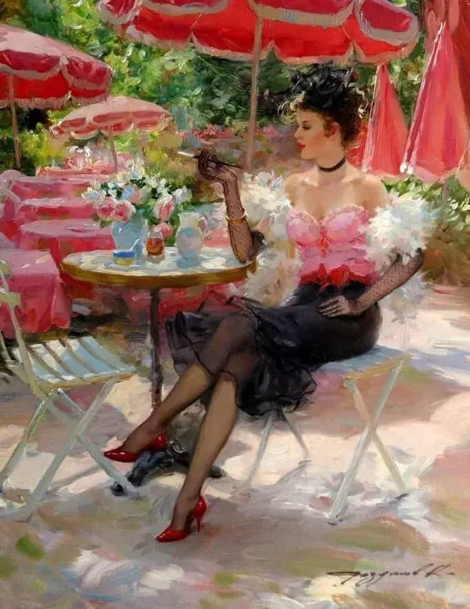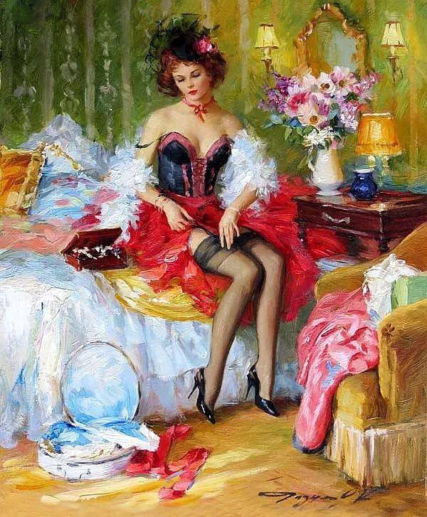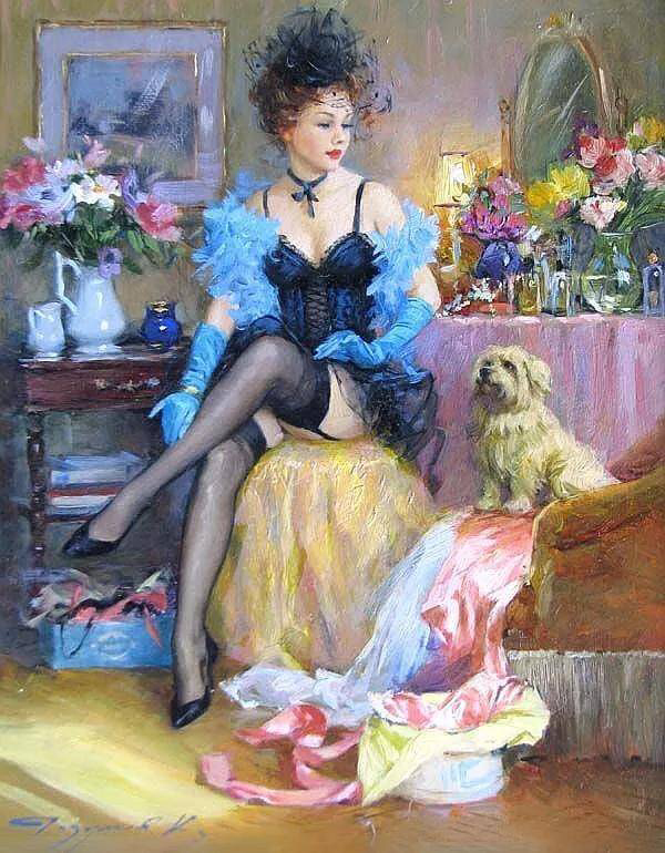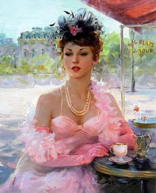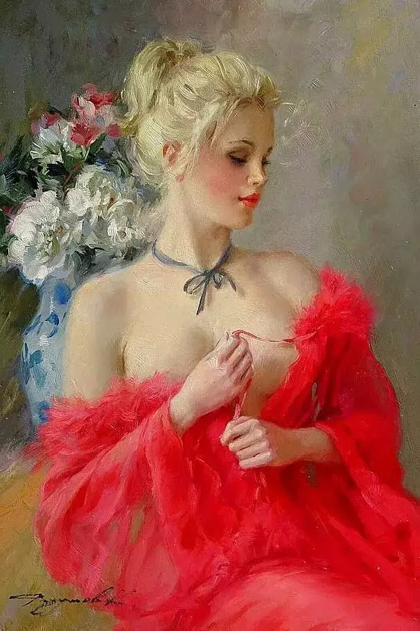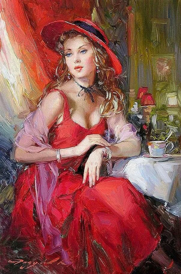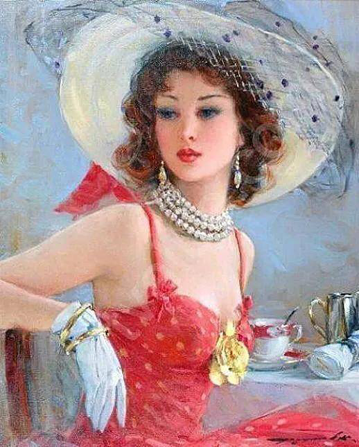拉祖莫夫笔下的乌克兰女性,既有西方女子的性感大胆妖媚,又有东方女子的含蓄端庄典雅!看到这些盛装出场、走在画布上的时尚美女,使小编想起了上海滩百乐门歌舞厅的那些舞女、交际花!