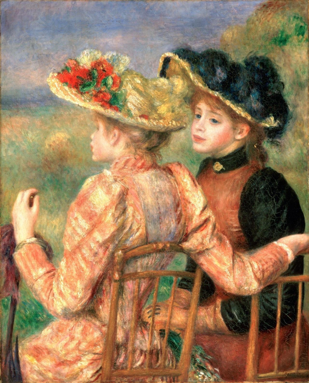 梳头的女孩、野外采摘鲜花、水果的女孩、看书的妇人、两个聊天的朋友、两个弹琴的女孩、或者跳舞的男女、各种聚餐等,随处可见的场景,都是画家创作源源不断的灵感源泉!