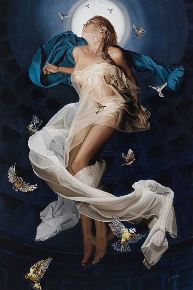 克里斯·德洛科,美国艺术家,除了画家的身份,他同时也是一名优秀的摄影师!他的很多作品,都是利用自己拍摄的模型和背景作为参考,然后他再在画布上使用丙烯酸树脂和油画将其转化为逼真的图像,进行重新创作!