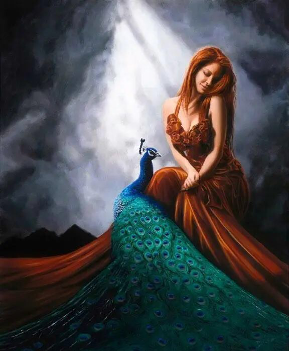 孔雀开屏🦚,最璀璨的一刻,那女性显示最耀眼光芒的时候,就是她一去不复返的青春年华了!画中的女郎似乎是欲哭无泪,可能她觉得一切都已无法改变了,逝去的东西肯定是找不回来了!时光匆匆,不可能倒流,再也回不到以前了!