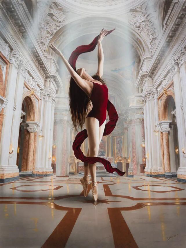 很难想象这些作品是画出来的,不知道的还以为是一幅幅摄影作品!如此具有动感节奏和旋律🎶的画面,不知道怎画出来的!要么画家本人就有舞者的天赋!其实画家对人物并没有画的那么逼真细腻,相比超写实作品相差了一大截!