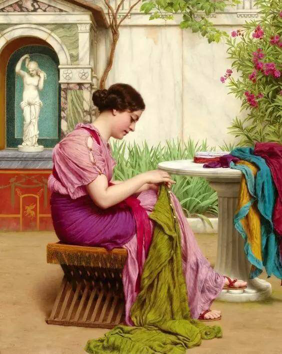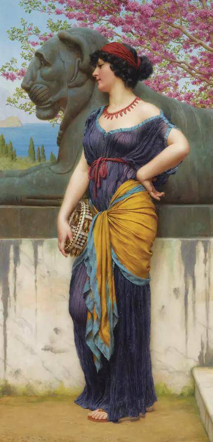 格威德特别擅长用女性柔软的纱织面料服饰来体现这些女孩们肌肤的肉感,古希腊的装束,宽大舒适的面料、自然下垂的褶皱,美妙的人体在自然的服装中若隐若现,还有各种大理石的背景装饰,人物形象尽显古典优雅时尚,魅力四射!