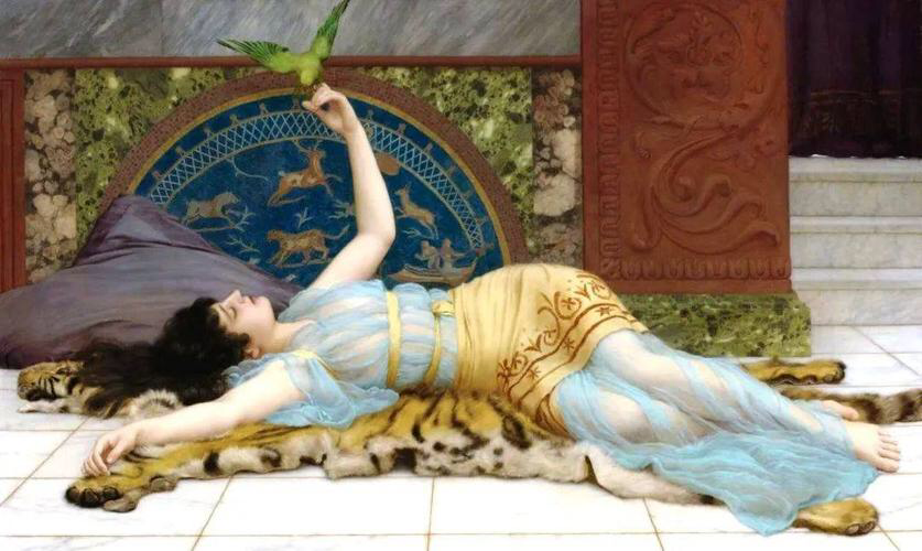美女和匍匐的狮子🦁️雕像,或者和虎皮毛皮等装饰物结合在一起,很多画家都会采取这种创作方式,给画面增添一种高大上氛围,更是为了突出女模特与众不同的气质!或者也可以体现女性的柔软细腻、小鸟依人等轻盈飘逸的体态!