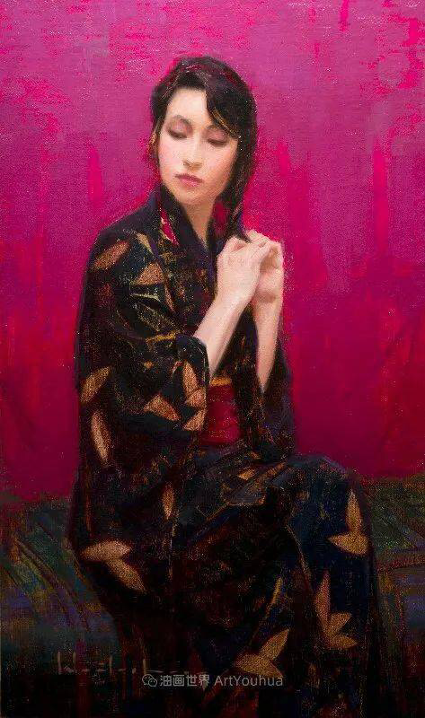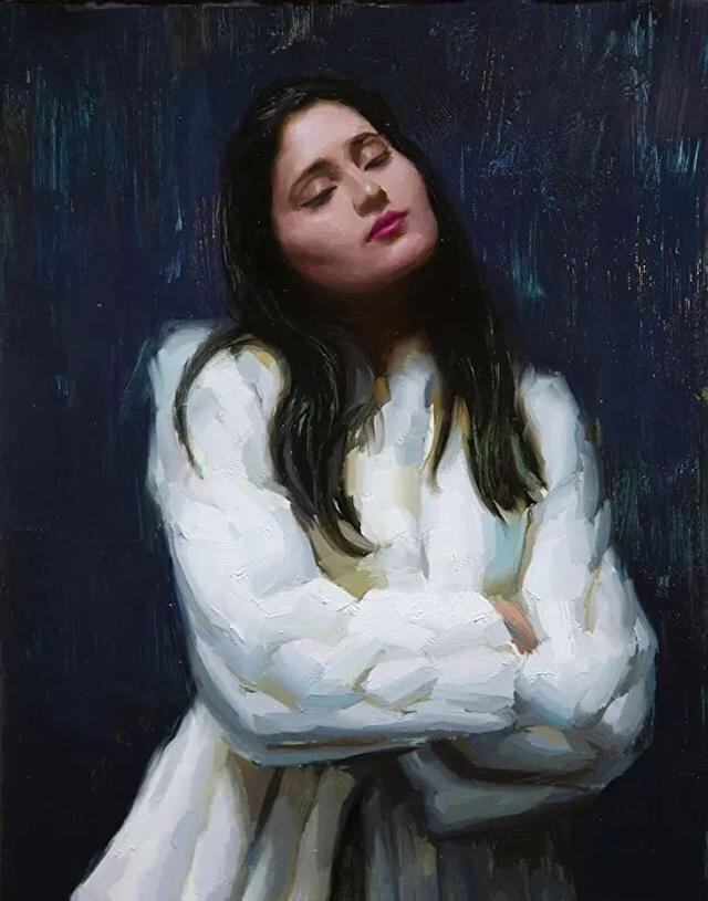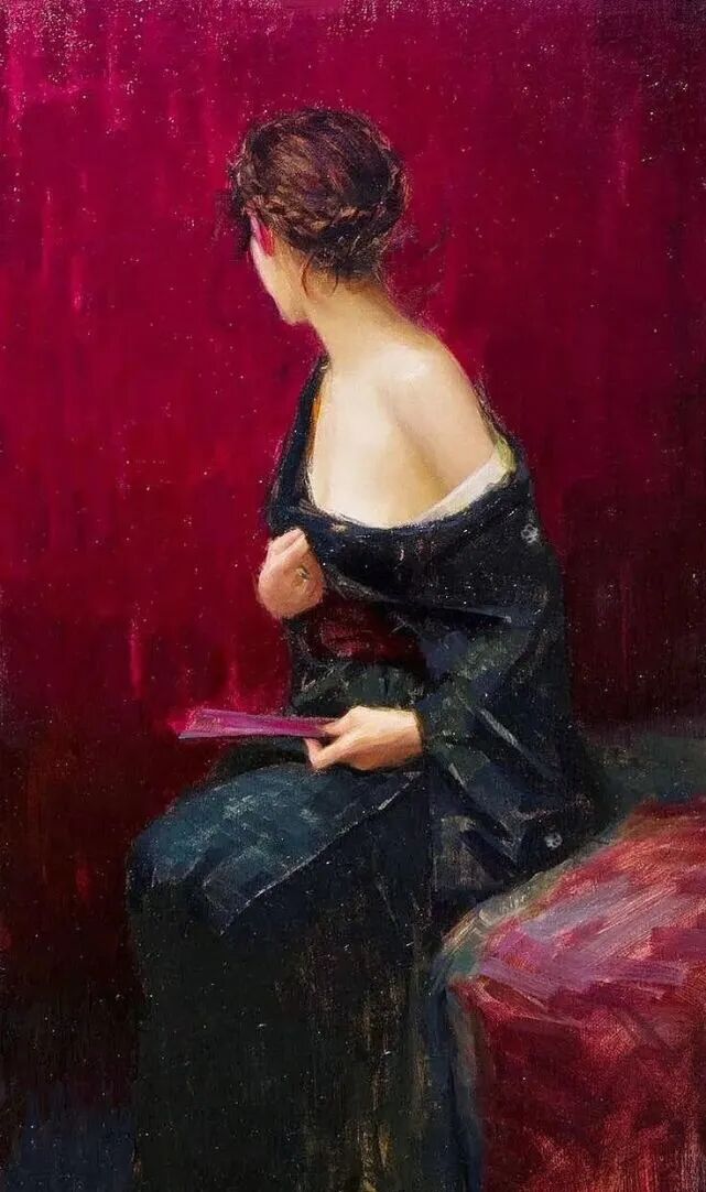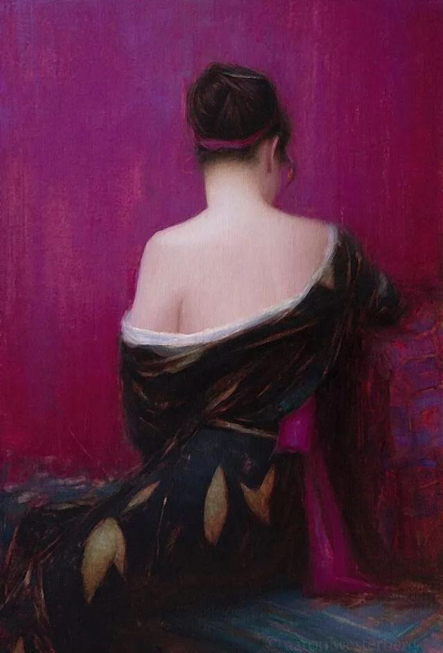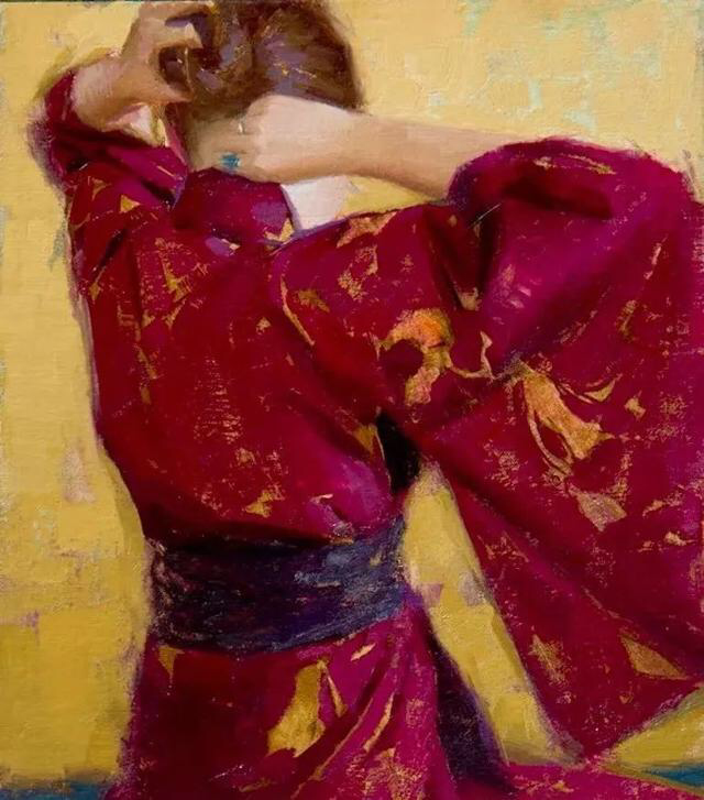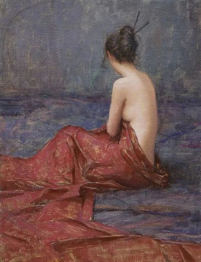 欣赏这位画家的很多作品,是那种欲说还休,一切尽在不言中的唯美情绪,只是需要你停下脚步慢慢欣赏!
