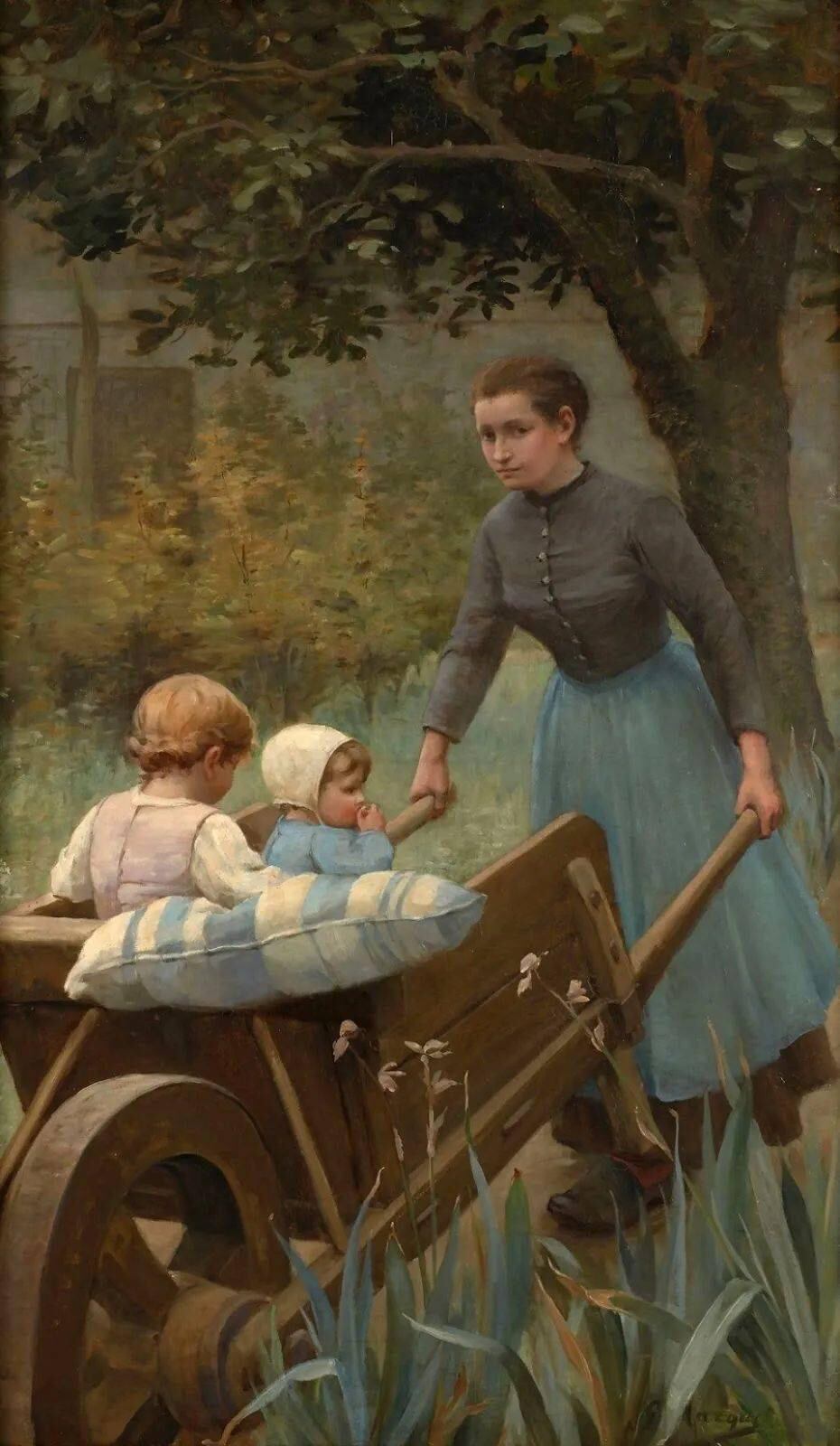 雅克的画作,贫富差距一目了然,你看上面那幅采水果的女子,一看穿着打扮,还有高贵冷艳的气质,就知道不是农家女!只是在家闲着无聊,所以去水果园里去玩玩乐乐而已,就像如今的农家乐!