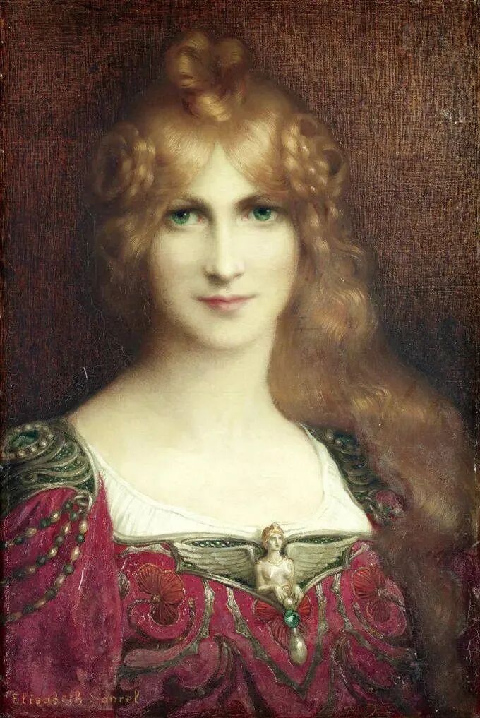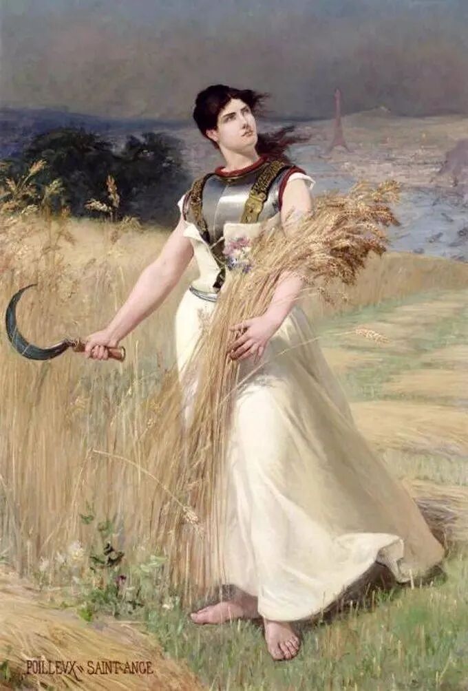 这幅画刻画了身穿战服的女战士形象,想起了替父从军男扮女装的花木兰!虽是一名女子,却是英气逼人!那把弯弯的锋利的镰刀,和她冷峻的面容,正好互相呼应!这是画家所有女性肖像作品中很少见的一幅!