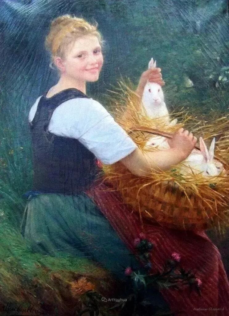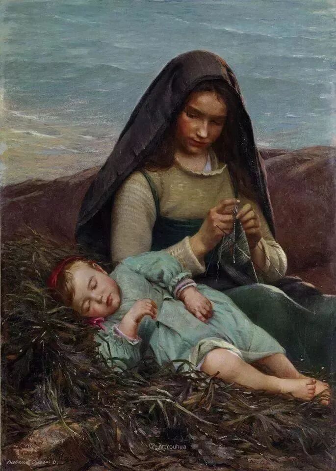 这女孩的笑容有多么纯真无邪,犹如她手里的小白兔🐰一样纯洁无暇,一尘不染!难怪画家会离开醉生梦死灯红酒绿的巴黎,回归这种海边的渔民生活!因为朴实无华,因为心地单纯!