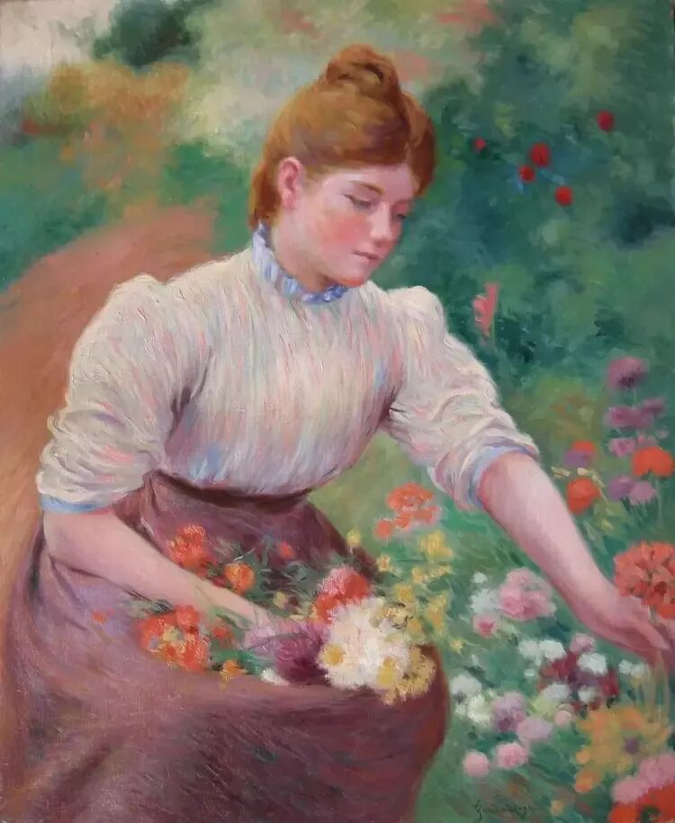 赞多梅内基和埃德加·德加是最好的朋友,他们的人物肖像作品有很多类似的地方!如上面这幅,一位朴实无华的采花女,人物形象很圆润很饱满很健硕,再加上五彩缤纷怒放的花朵,绿意盎然的氛围,给观者带来一种积极向上的乐观心态!