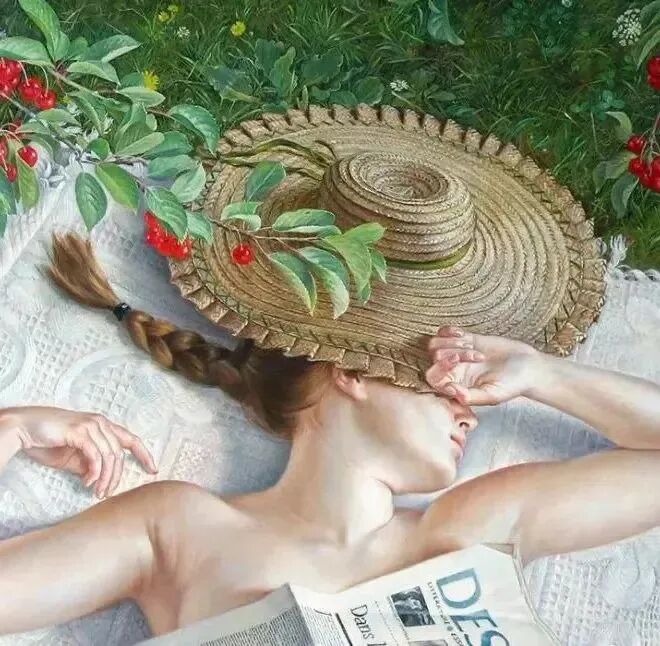这位法国女画家的思想估计跟小编差不多,该吃吃、该喝喝,该睡睡,该玩玩,放下手头的一切事情!只要不是生死大事,其它都是闲事,都可以先选择先放一放!