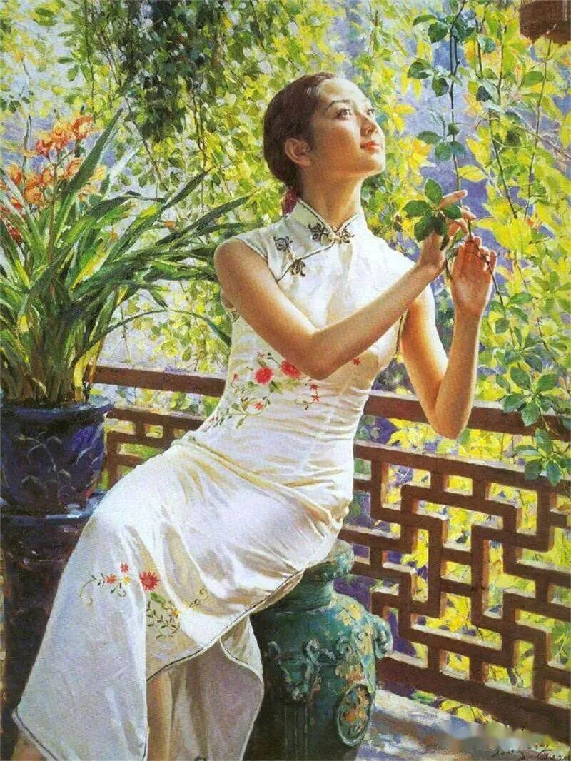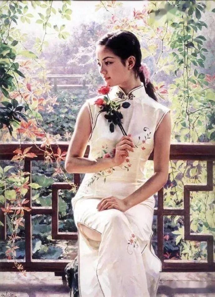 最具有中国特色,古典主义风格的旗袍美人!袅袅婷婷,仪态万方!虽然很多年来,画家一直在美国旅居,但这种根深蒂固的文化基因和血脉,是永远不会改变的!