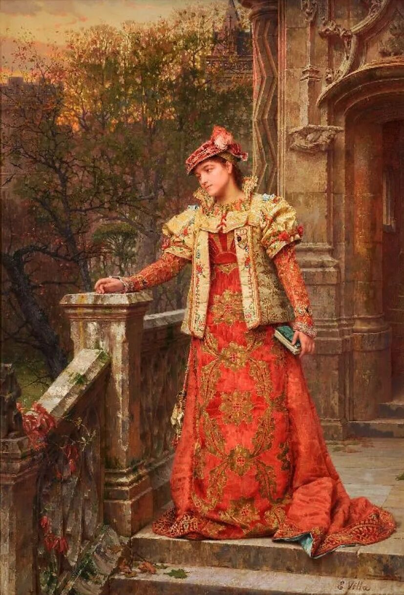 今天4月23日是世界读书日,这幅画非常应景,盛装华服,拿着一本书,扶着栏杆,若有所思,这就是书呆子偶然的情绪失控,可是千万要小心脚下面的阶梯,别读傻了!