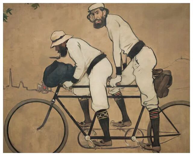 这是画家和朋友两个人骑着双人自行车,童心闪烁,四处兜风去了!坐在最前面叼着烟斗的,小编一眼就认出了,这是画家享受生活顺便创造灵感的最佳方式,也说明了画家也是一位率真可爱的大男孩!