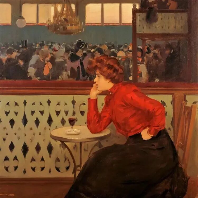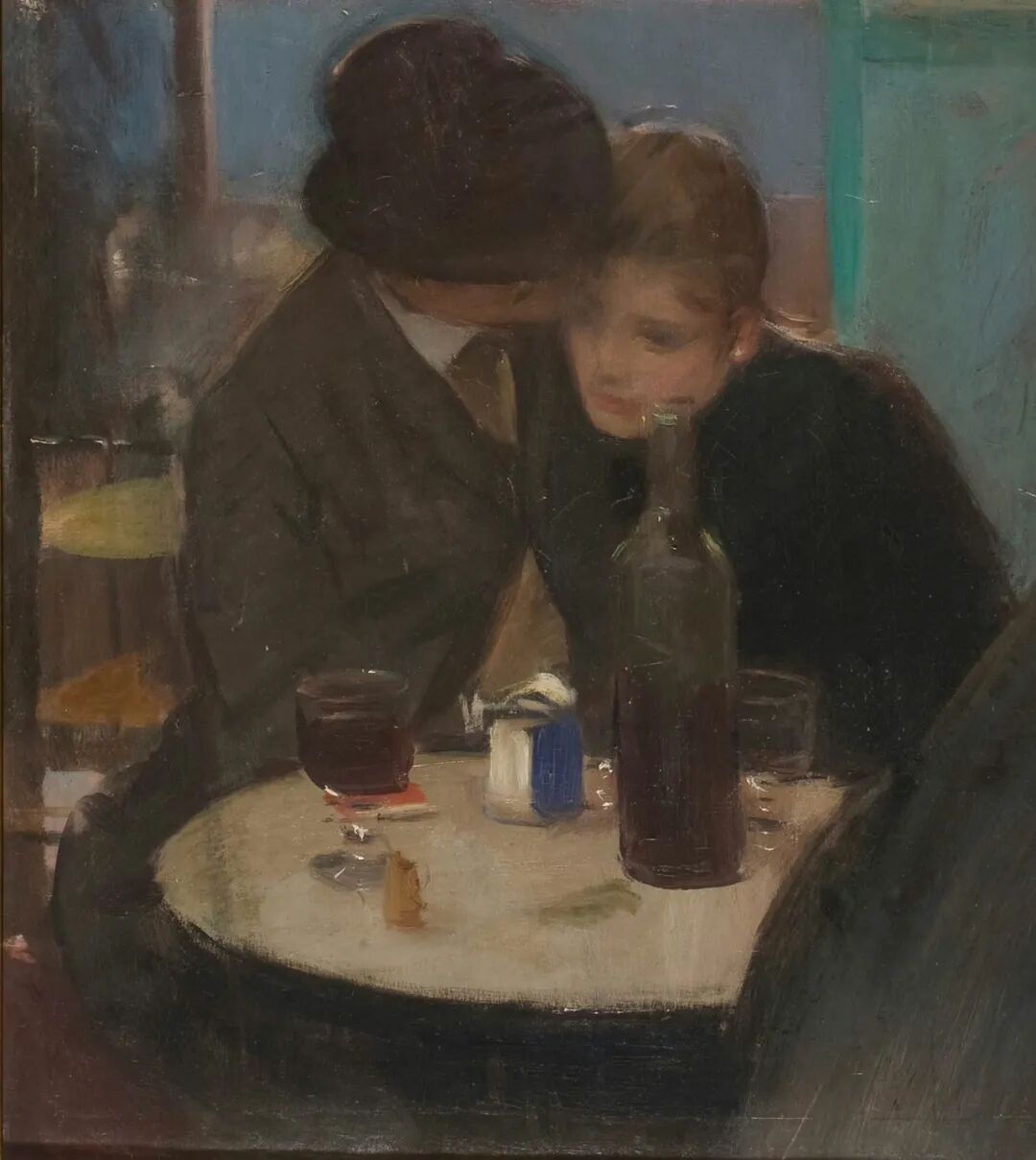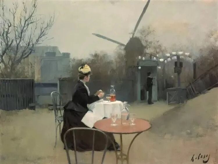 《磨坊室内》,一对卿卿我我耳鬓厮磨的情侣和一位孤独的女孩,形成了一种鲜明的对比!磨坊应该是类似于古代的妓院吧,哪位画家还画过红磨坊的作品,一下子想不起来了!