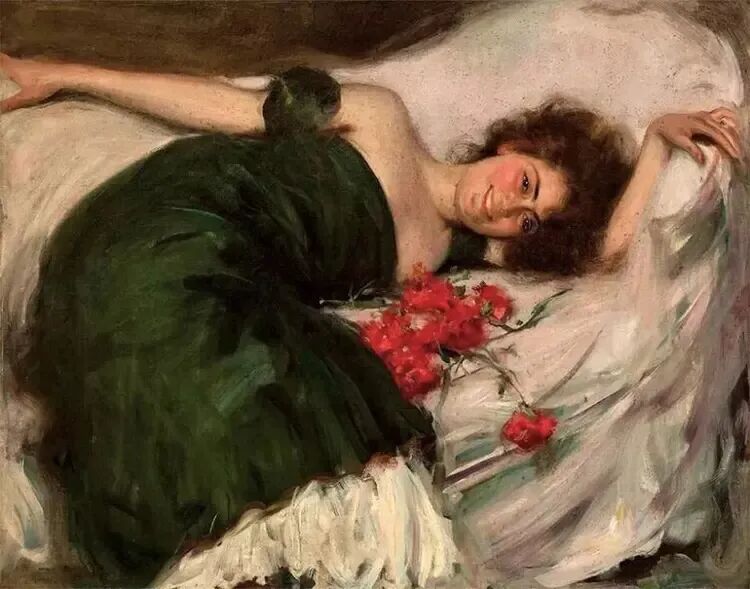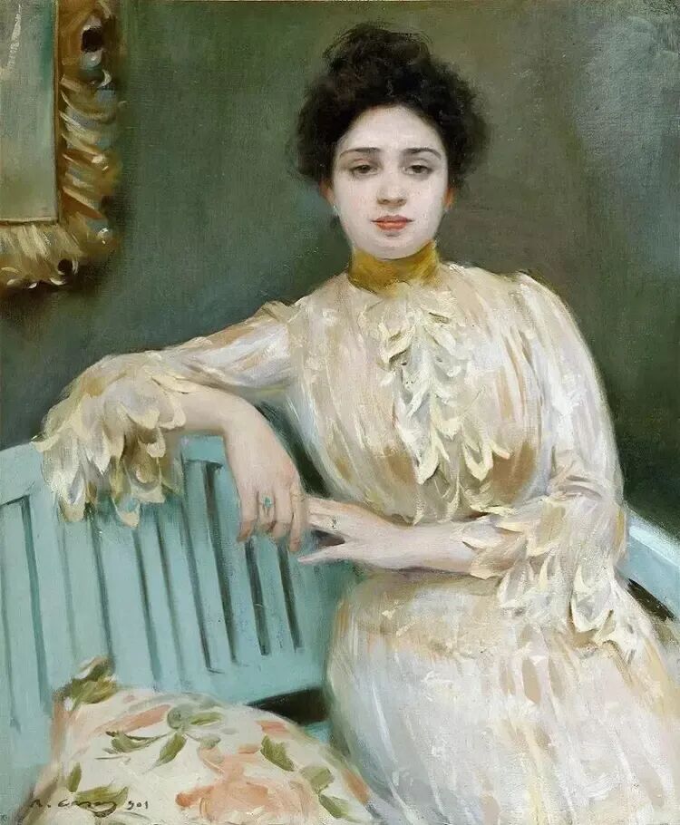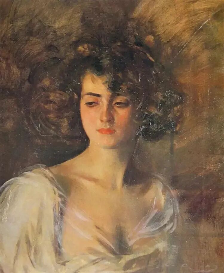 艺术家大多数是多情种,这位画家更是不例外,他为朱莉娅·佩雷尔,也就是他创作的模特、情人,后成为妻子的她,创作了100多件作品!在他眼里,朱莉亚的美无处不在,借用一句俗话:情人眼里出西施!