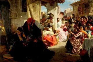 《吉普赛人和女孩》,吉普赛人的占卜和看相算命是一流的,据说她们的预言都很准!其实算命就是要在最短的时间里识人,通过对方提供的各种信息,还有岁月在对方身上留下的手相和面相等特征,然后察言观色,最终判断她们的性格命运等!这也需要一种智慧!