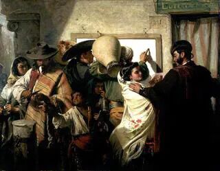 约翰·菲利普,出生于贫苦家庭,后因为天赋遇到贵人赞助,最终成为英国维多利亚时代的一名苏格兰画家,以其对西班牙生活的描绘而闻名,被称为约翰“西班牙人”菲利普!他是威廉·贺加斯和大卫·威尔基的追随者,画了很多反应当时社会现象的风俗画,场景昏暗,人物形象鲜明,如舞台场景!