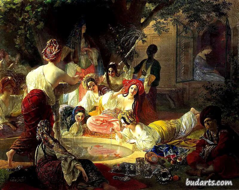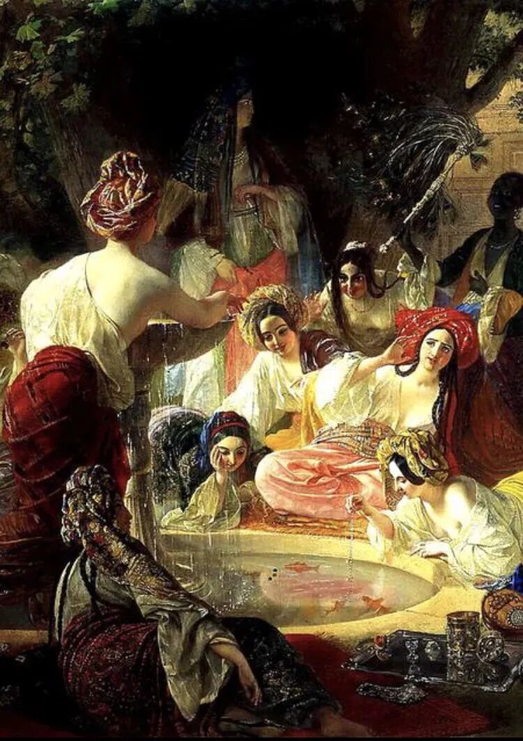 《巴克奇萨拉伊喷泉》,这小小鱼池里的小喷泉⛲️,把一群贵妇人们喷得人仰马翻,站立的,仰卧的,跪着的,托腮的,嬉水戏鱼的,好不热闹,有钱人家就是会享受生活,一边嬉戏打闹,一边享用美食!