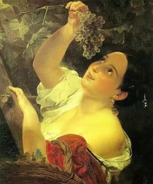 《意大利午间》,农妇爬上梯子🪜采葡萄🍇了,丰收的喜悦辉映着她饱满而健硕的体态!
