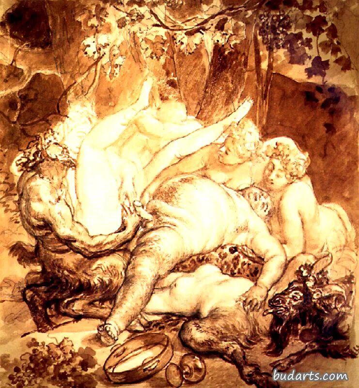 《思伦,萨堤尔和酒神》,醉酒时的形态,狼狈而不堪入目!