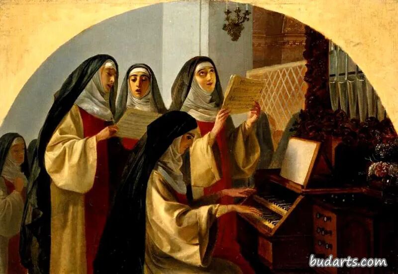 整幅画面金碧辉煌,活力四射,洋溢着祥和欢乐的气氛!画家把这群女人的华丽服饰、肤白貌美展现得淋漓尽致,与服侍她们的黑女佣形成了鲜明的对比!
