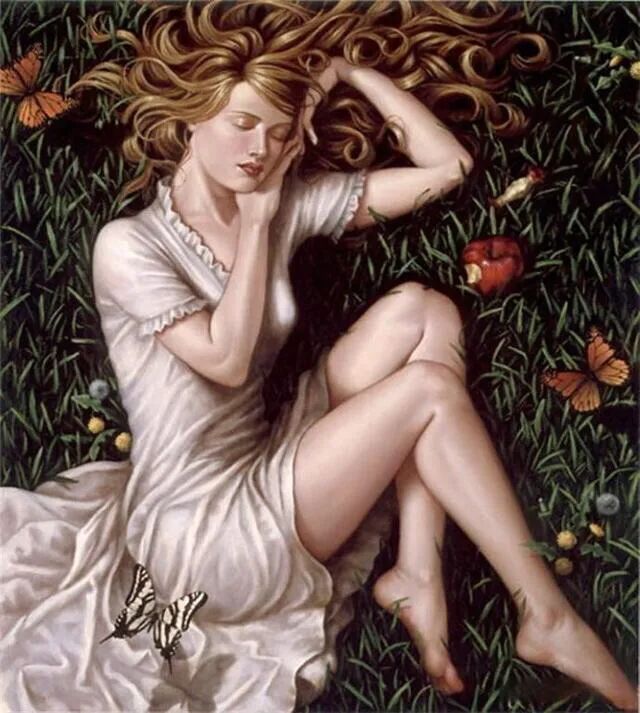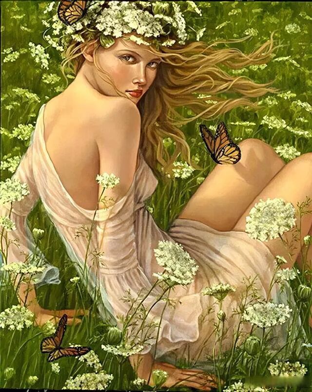 在西方艺术家笔下,有很多带有蝴蝶翅膀的少女形象,演绎了女性的柔美和内在的灵性!如上面英国艺术家索菲.安德森创作的《女孩的美丽脸庞》,更是把女孩和蝴蝶的翅膀和桂冠融合在一起,这是一位最美丽的最能打动人的小姐姐!