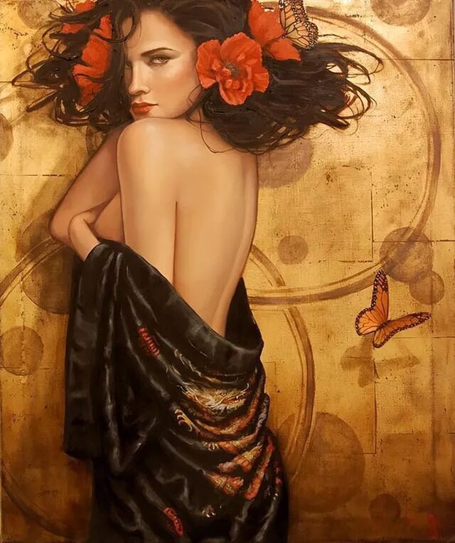 今天给大家介绍的这位女画家,特别喜欢把蝴蝶🦋和女性互相融合在一起,也许这些画作也代表着她自己在艺术道路上的一次次华丽的蜕变!