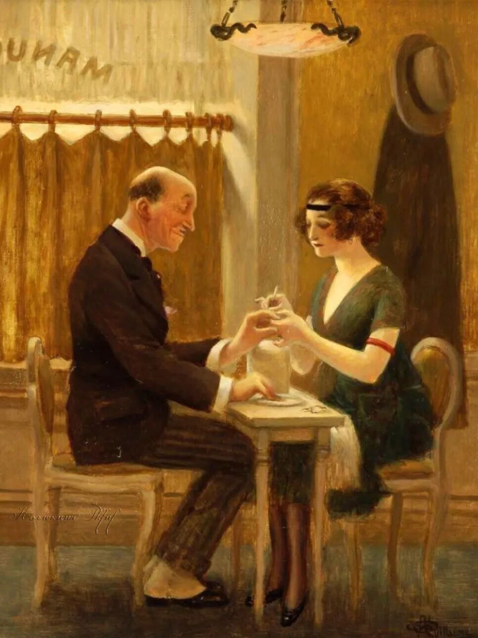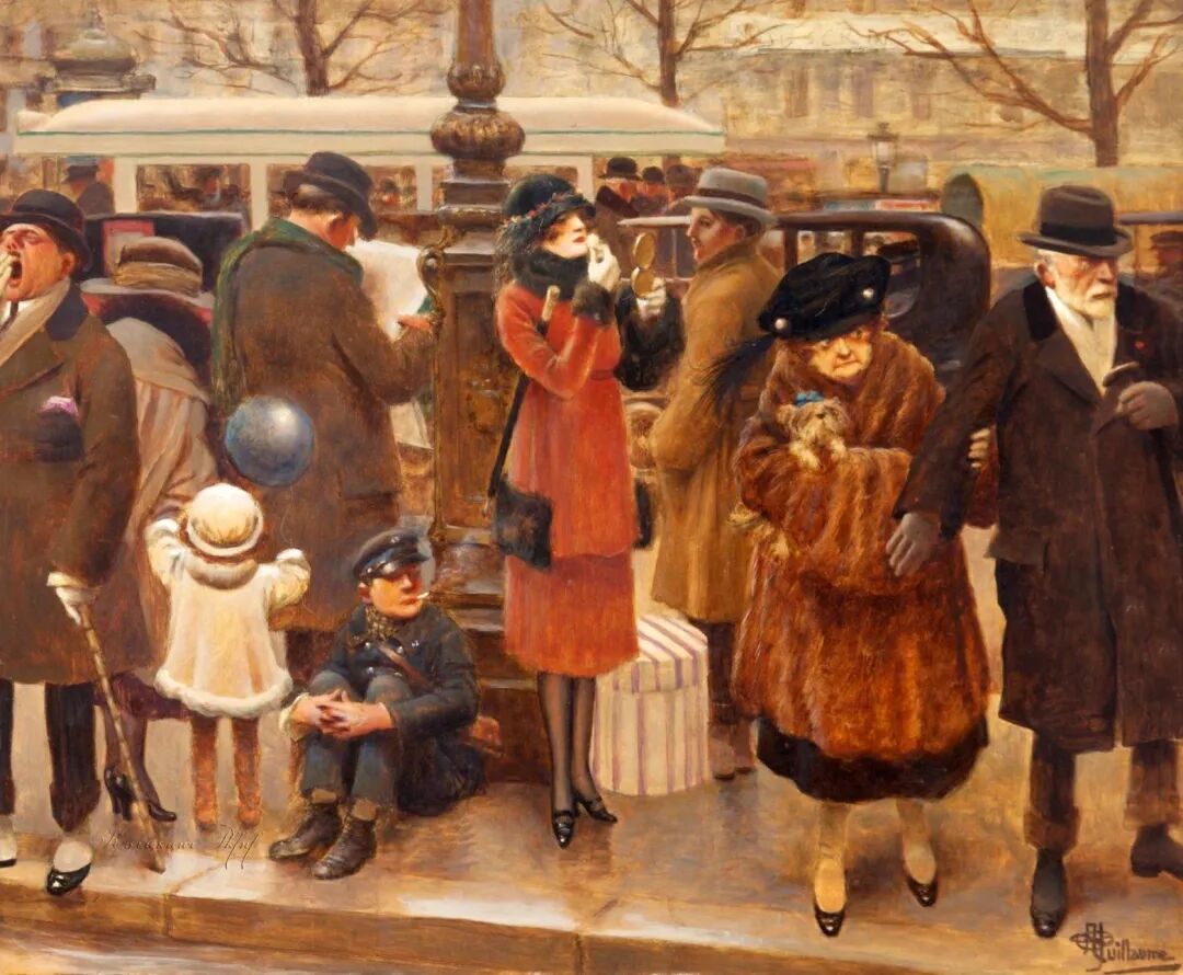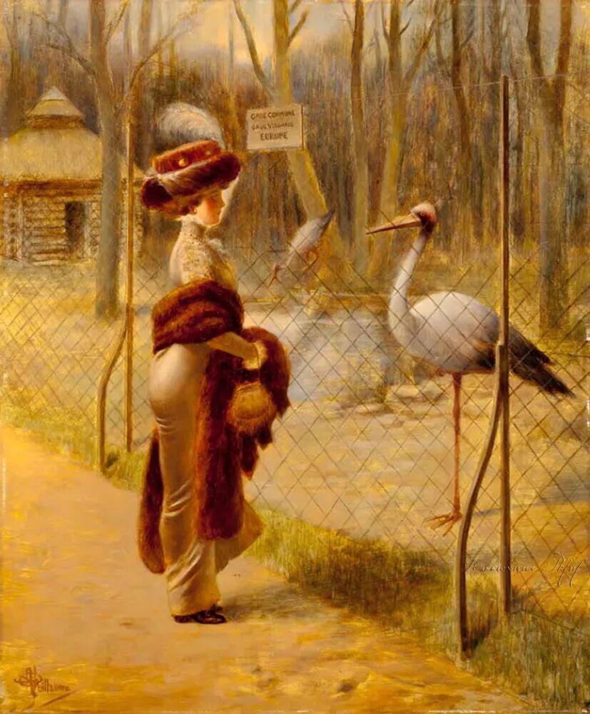 阿尔伯特·纪尧姆的画作也有异曲同工之妙,每一幅画其实也蕴含着诸多细节!男男女女游戏人间,皆成一幅幅佳作,生动而传神,让观者细细揣摩,情不自禁会心一笑……