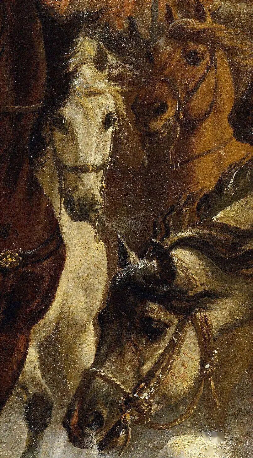 对于历史战争场景之中士兵们表现出来的英雄气概,画家也刻画得非常到位!画中的出场人物非常多,几乎每个人,画家都用生花妙笔给予了最精彩的瞬间!