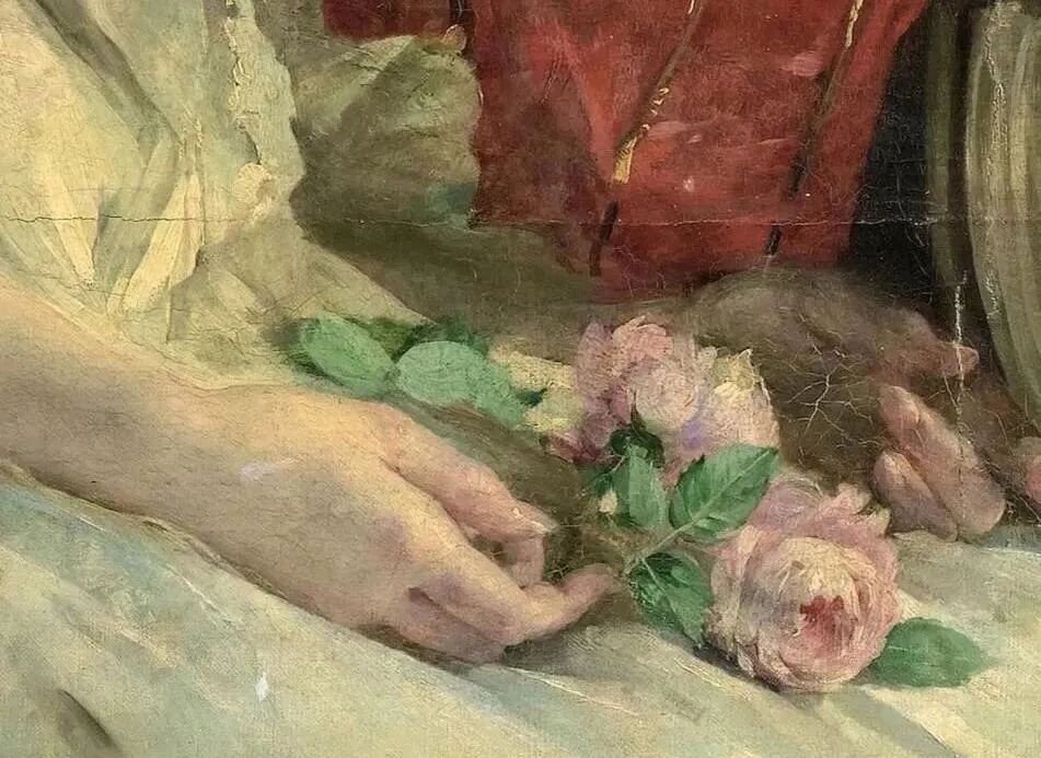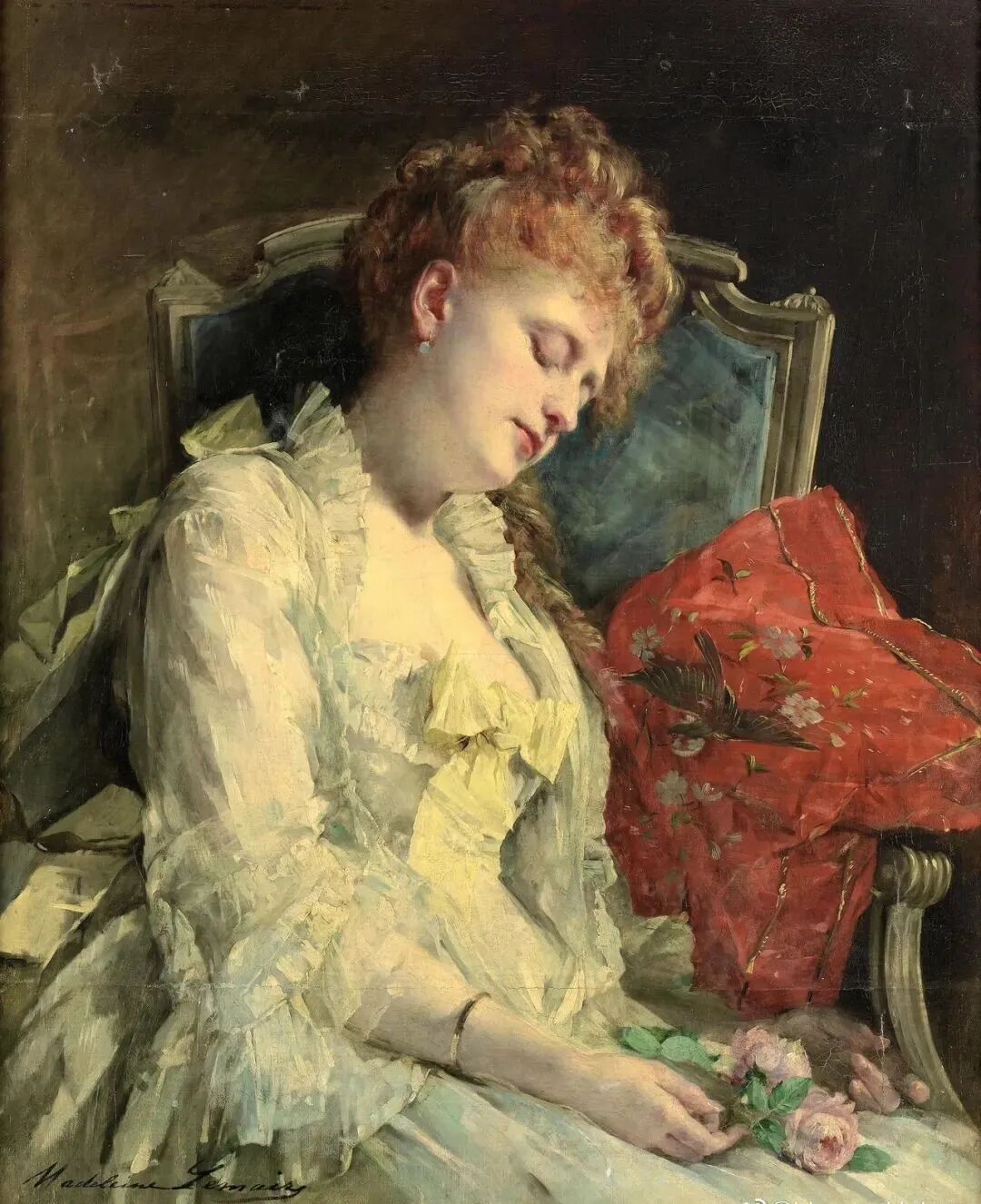 《坐在达戈伯特椅子上的女人》,不知道是不是这位美好时代的巴黎名媛玛德琳·勒梅尔的自画像,这位女画家以优雅精致的风俗画和花卉画闻名于世,被评论家誉为“玫瑰皇后”🌹 !