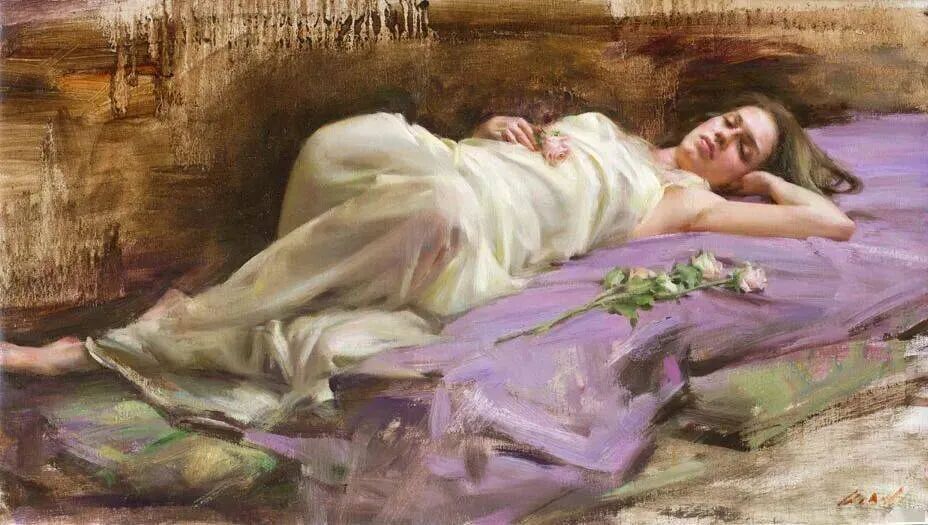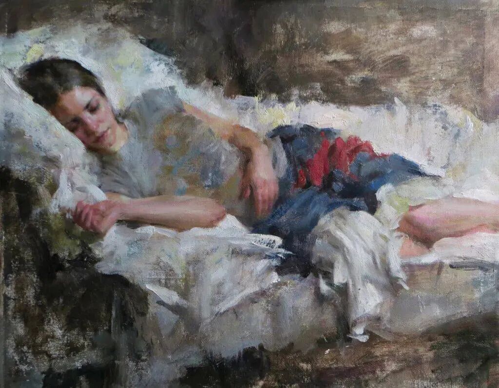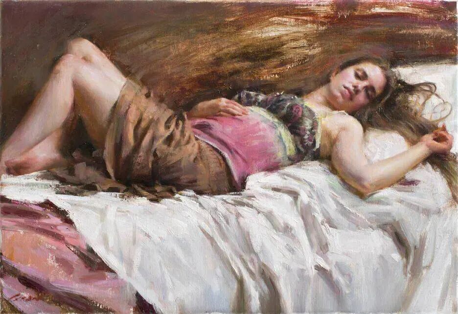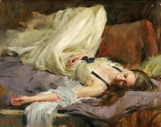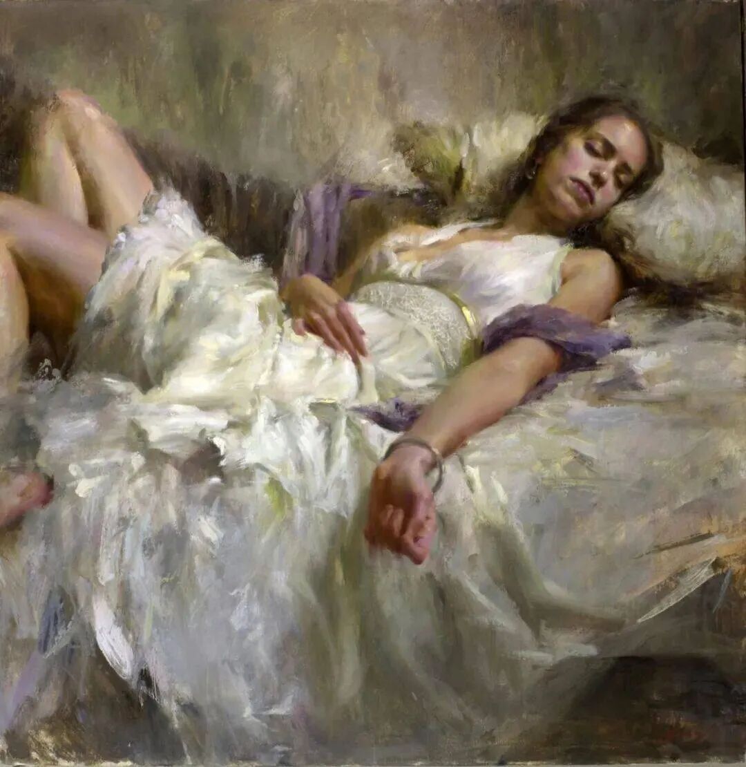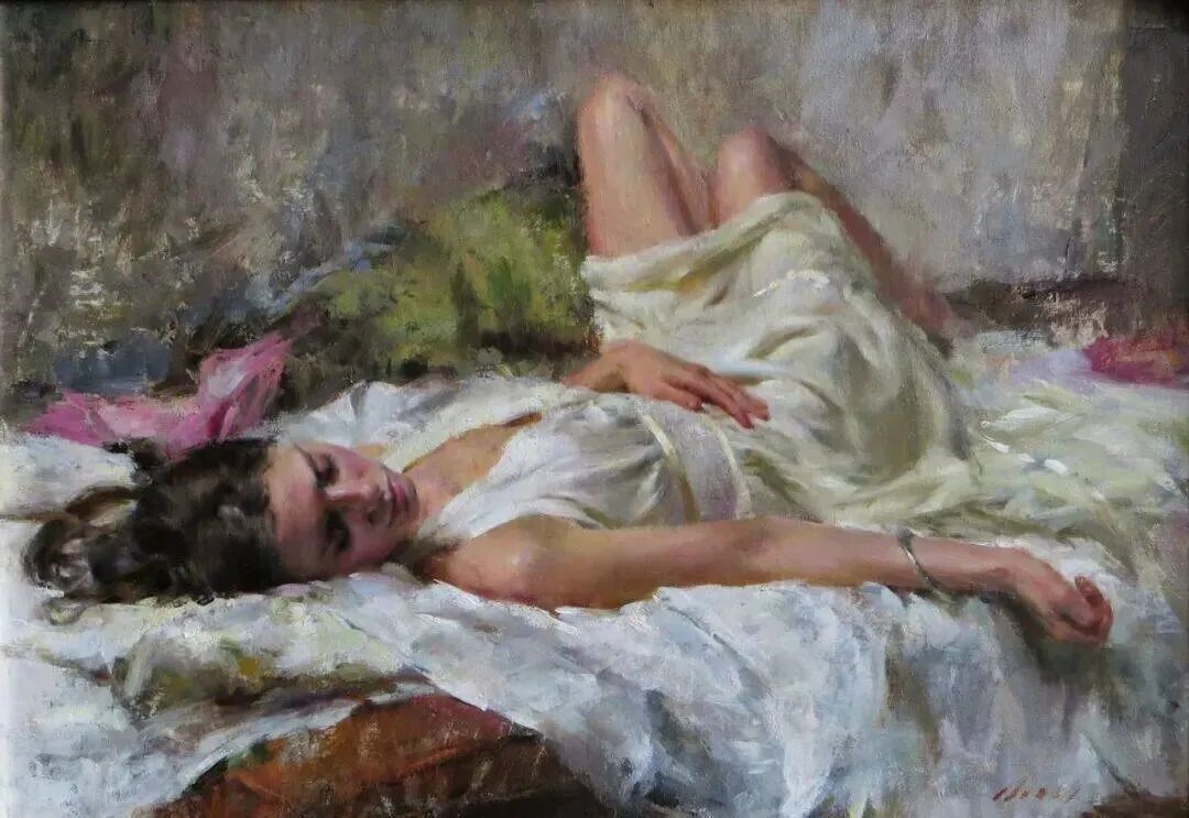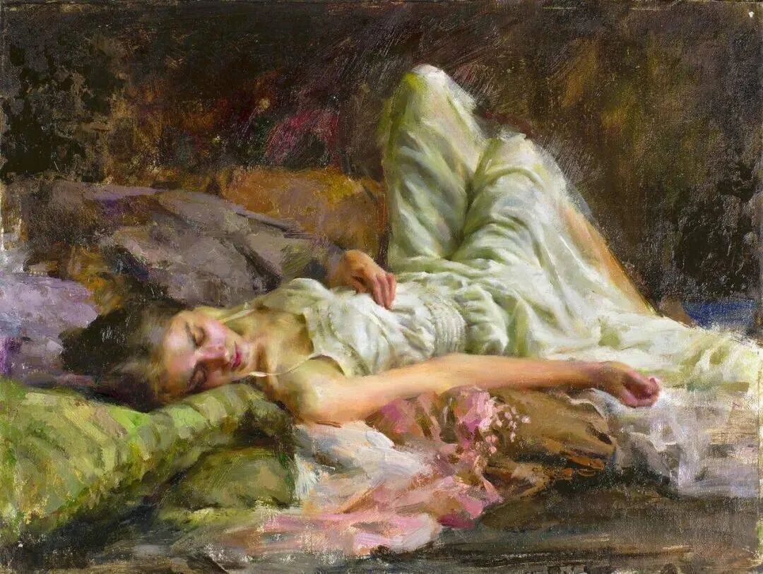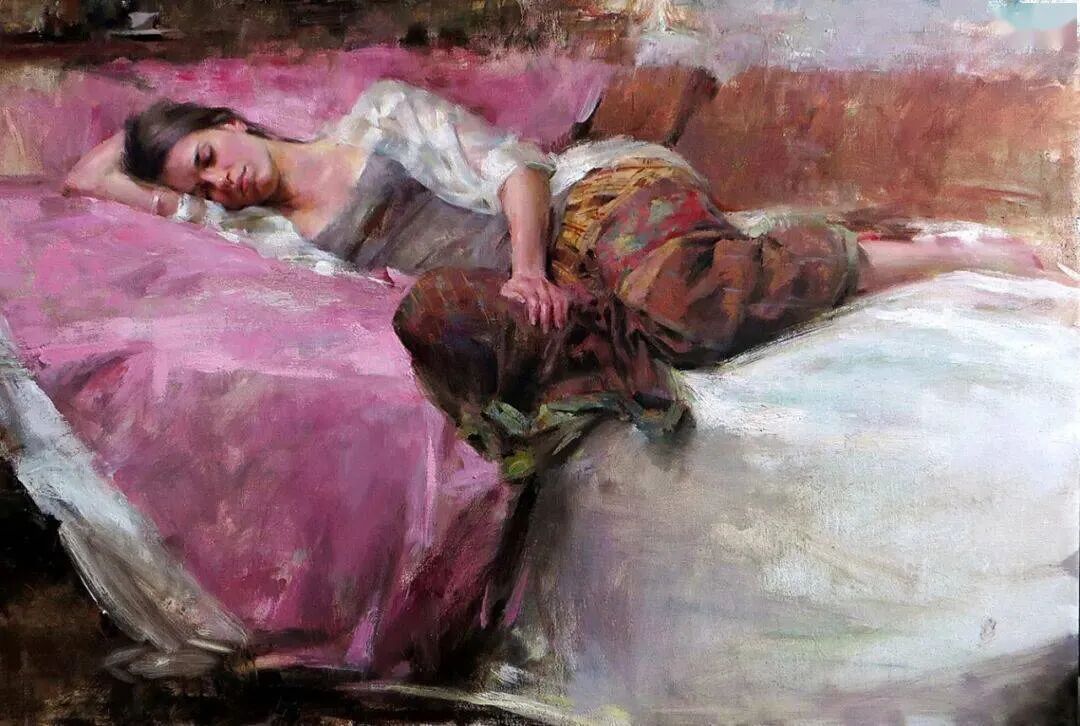 这位画家最擅长描绘女模特小睡或者随意休憩或冥想的时候,她们细腻的感情、姿势神态表情等!那是她们最放松身心的时刻,也是随心所欲向别人展示最真实自己的时刻!