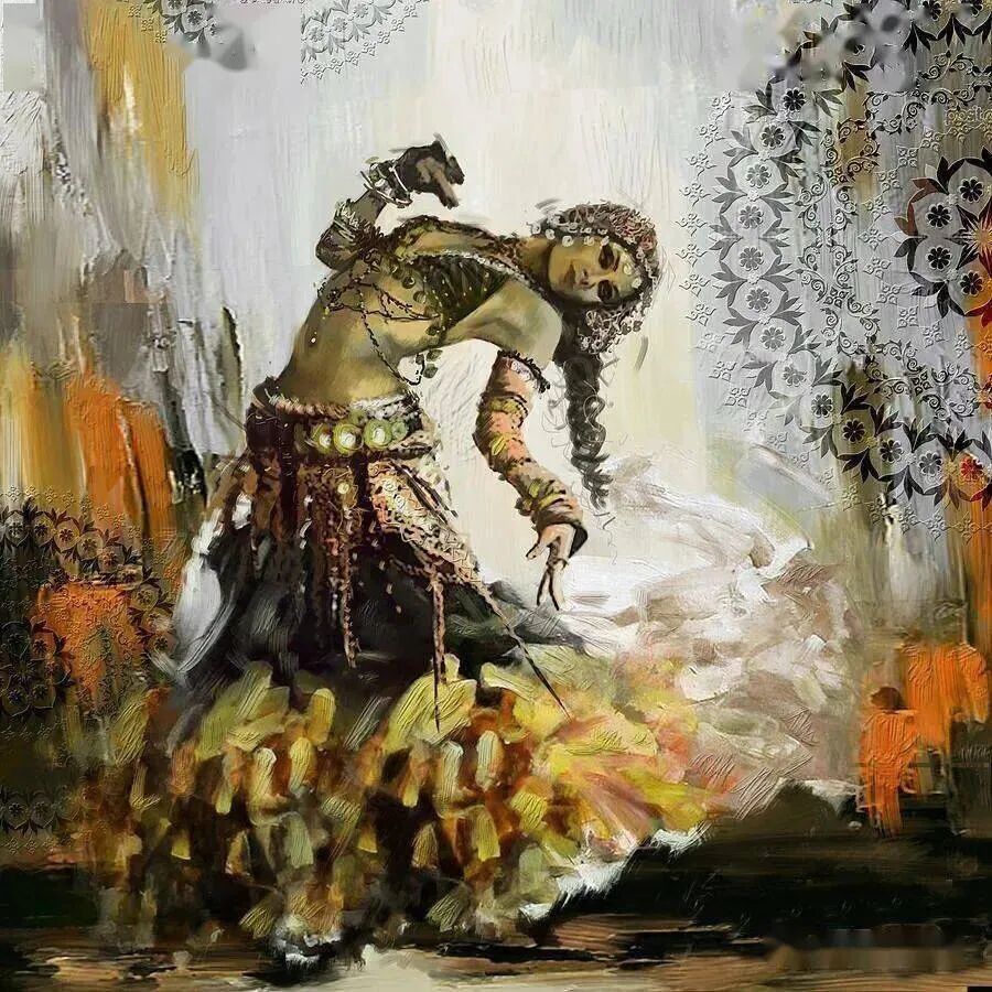 印度和巴基斯坦原来是一个国家,都是英国殖民地,后两个国家开始独立,分别成立印度共和国和巴基斯坦伊斯兰共和国。这位画家笔下的各种舞蹈,应该统称为印度舞,我们在印度电视剧里也经常看到,伴着印度歌曲优美动听的旋律翩翩起舞,似乎她们印度人每个人都会跳,但跳的如何出类拔萃,那还要看个人的先天条件和天赋了!