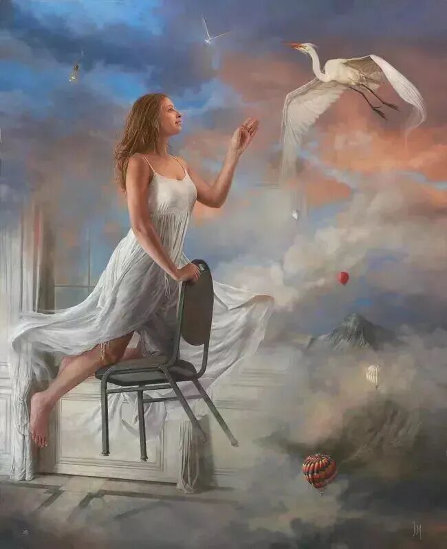 哈维尔的作品,确切地说是梦幻现实主义,就像梦境,或者是你的前世今生,或者是另外一个星球,她们一直漂浮在半空中游荡,就这样荡气回肠,扣人心弦地走进观者的心中!