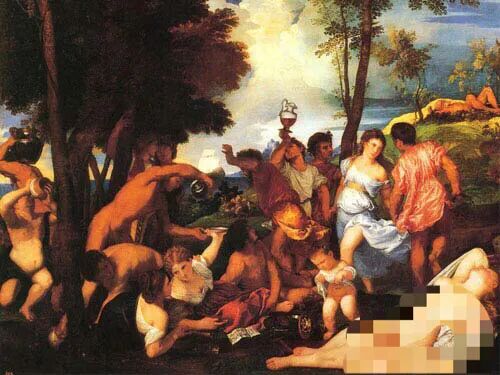 提香-韦切利奥的《安德罗斯河边的酒神狂欢节》,现场男女老幼东倒西歪、手舞足蹈、大呼小叫、随心所欲!借着酒劲,你可以随意发挥!就像画家创作,灵感来了,随手大笔一挥,一幅巨作就这样完成了,也许能名垂青史!
