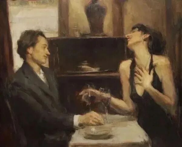 《绅士和喝酒的女人》,凑的这么近,都凑到女人身上了,还能算是彬彬有礼风度翩翩的绅士吗!