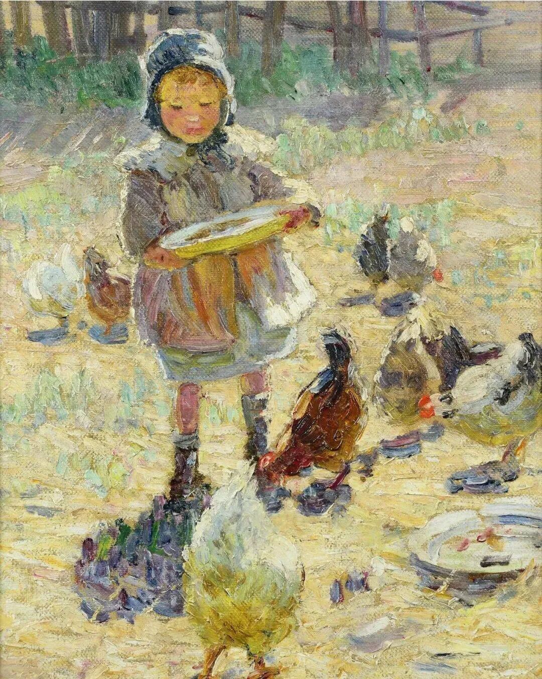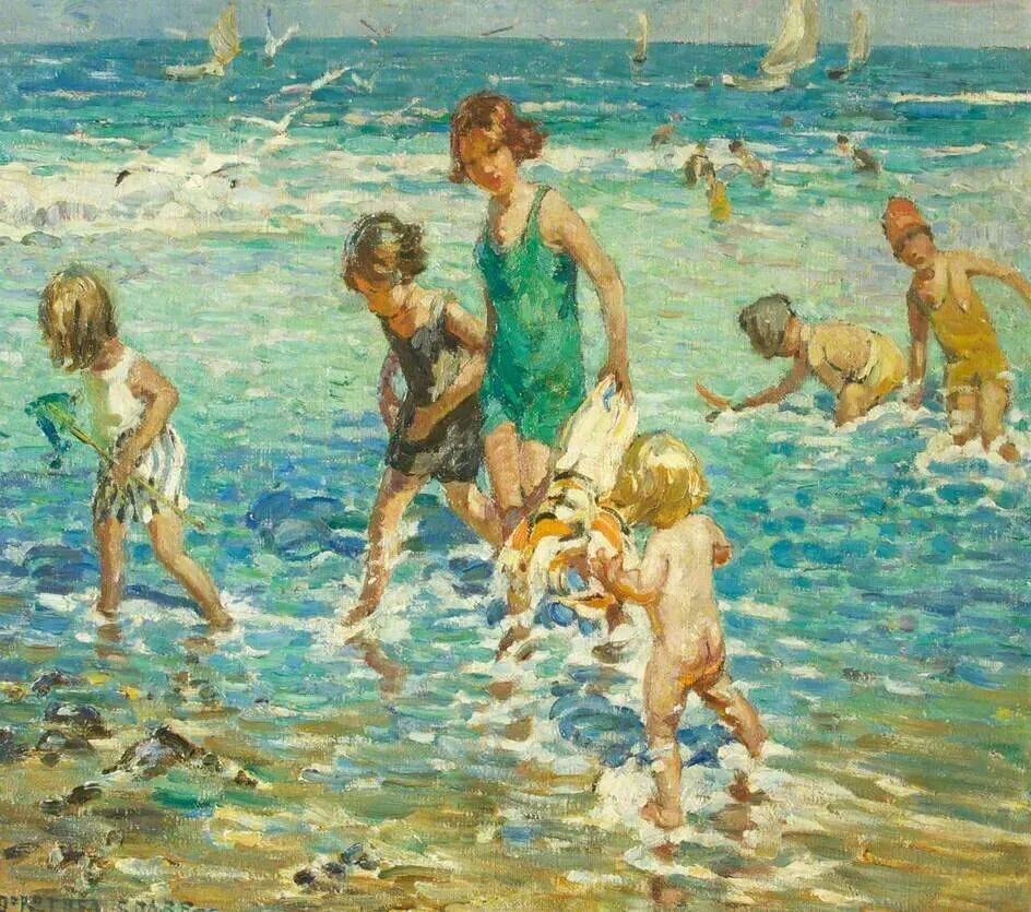 这位英国画家主要擅长描绘天真无邪的儿童,他们在大自然中自由自在玩耍嬉戏的场景!有在海滩游泳戏水的,有湖边捞鱼捞螺蛳的,有喂鸡喂大白鹅的……如果你是农村长大的,那对于这样的童年生活,肯定很熟悉,也应该很怀念那时候的无忧无虑!