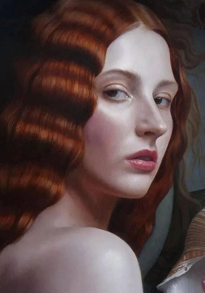 一名画家获得这么多荣誉和称号,那自然在某一方面具有超常发挥的画技!欣赏上面的写实油画,是不是一下子被吸引了眼球!那丝丝入扣闪闪发光的金发,那逼真到有血有肉的肌肤,那精致的白里透红的容颜,朱唇欲启,优雅而端庄!