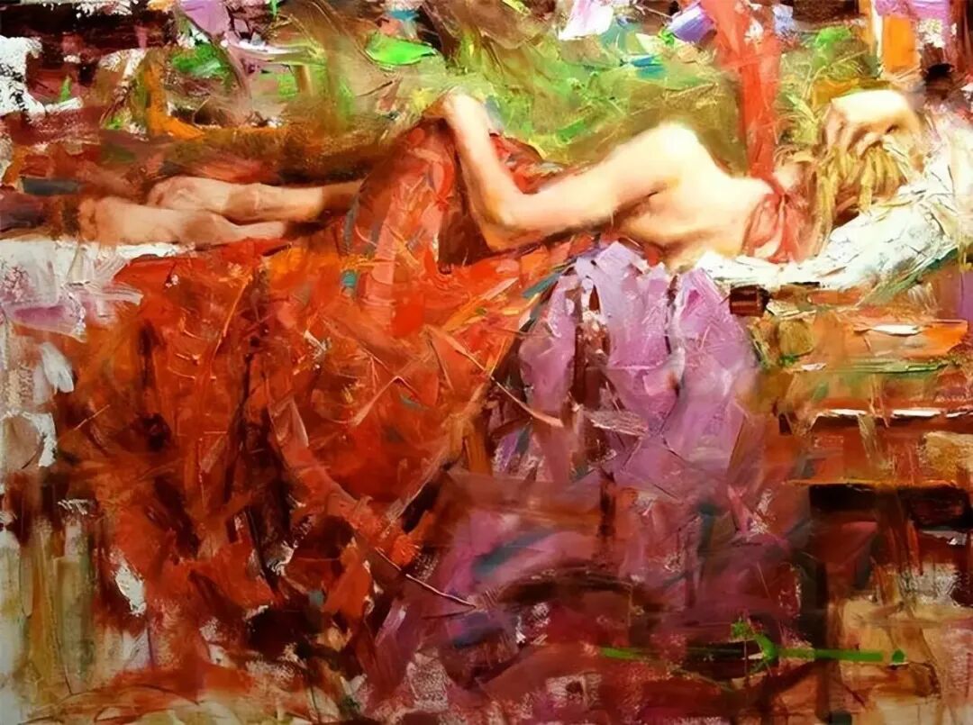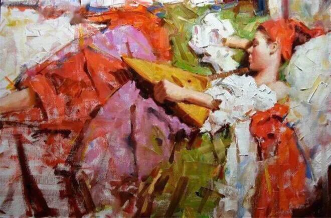 这色彩很热情泼辣,笔触也大胆随意,足以点燃观者的眼球和各种欲望!麻木不仁和千遍一律的生活状态,需要这种感官的刺激!