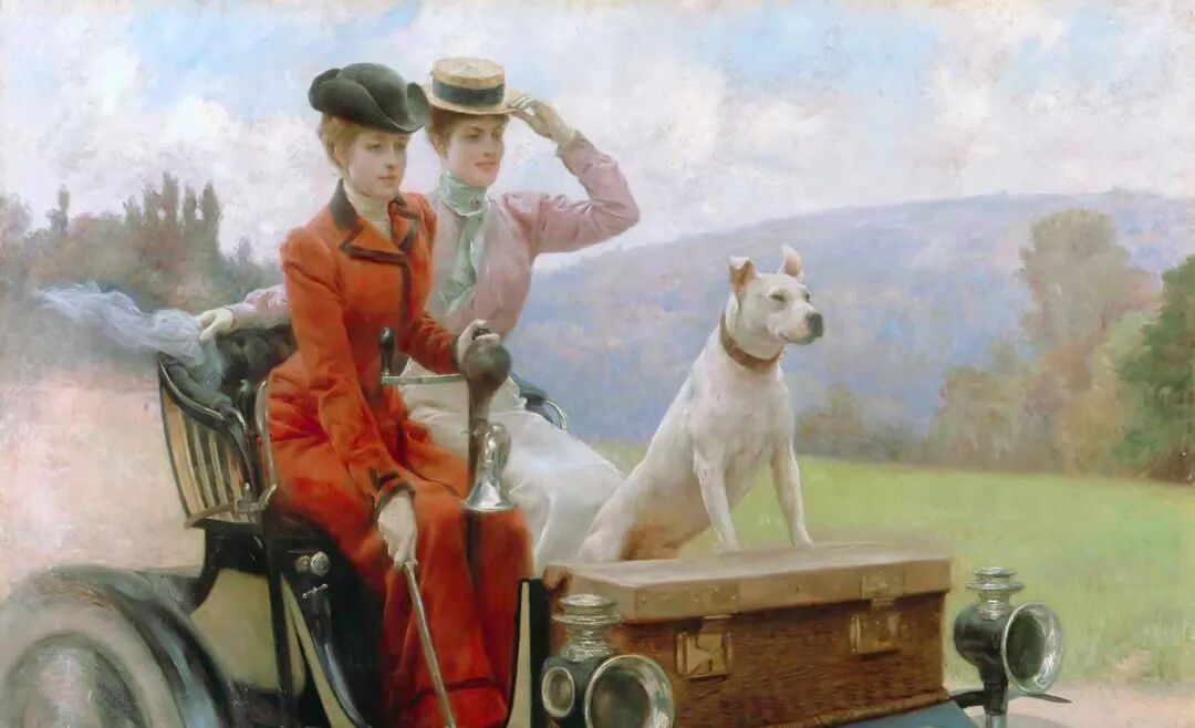 这是驾驶着老爷车在野外兜风,至于这是什么车,小编没见过世面没见识,不知道是不是三轮车!两位女士出游,沿途风景秀丽,心情舒畅,连这坐在前排的狗儿🐶,也显得神气活现,这狗真是太幸福了,跟着主人出尽风头!
