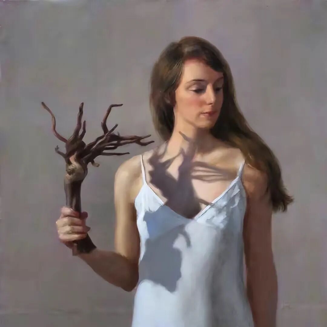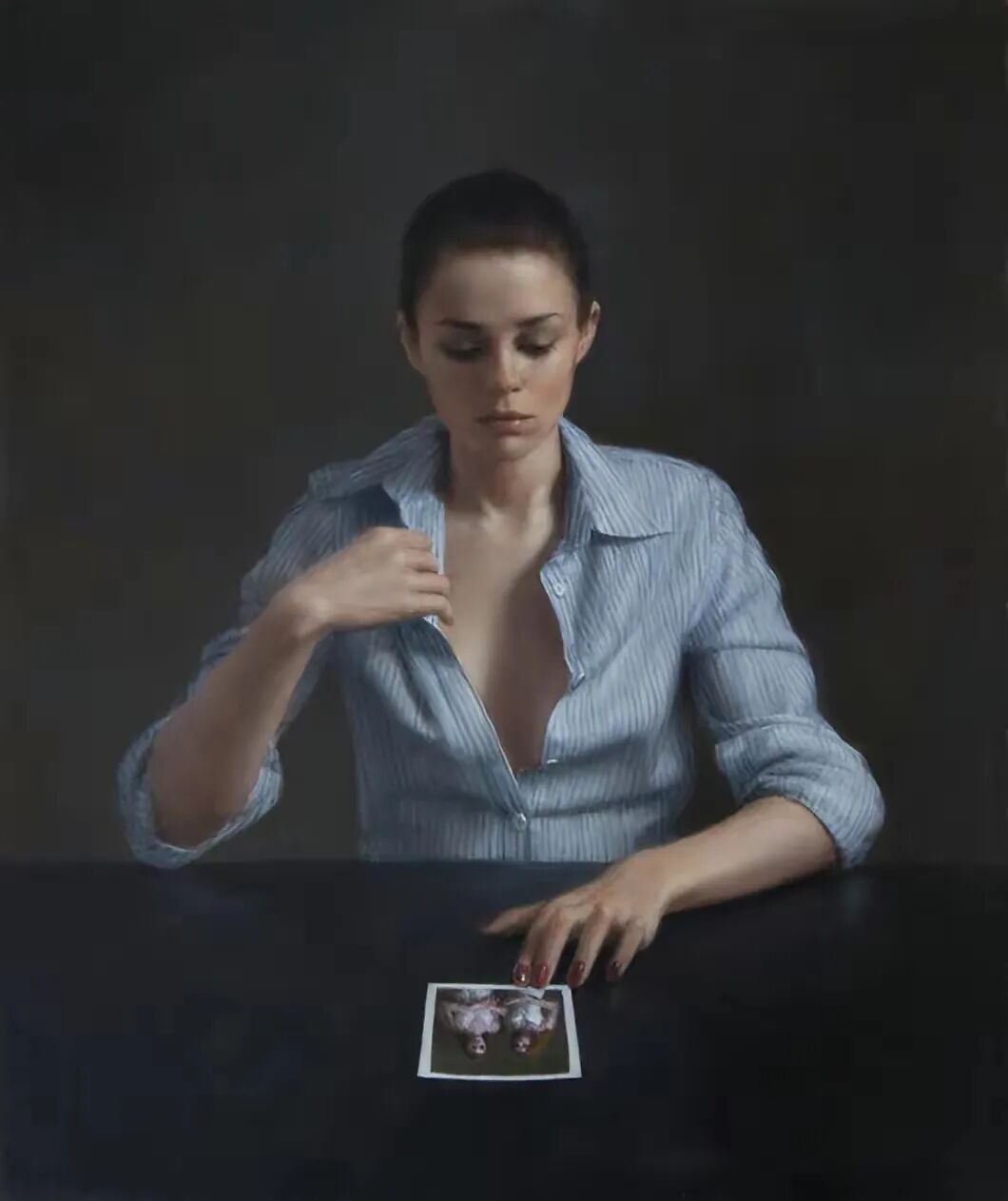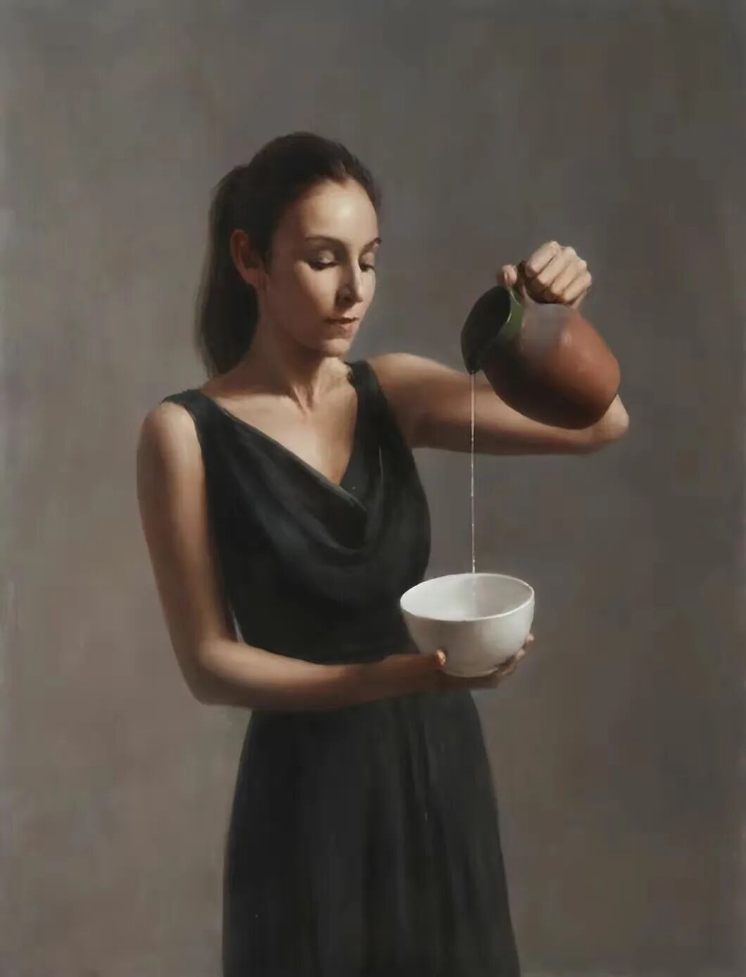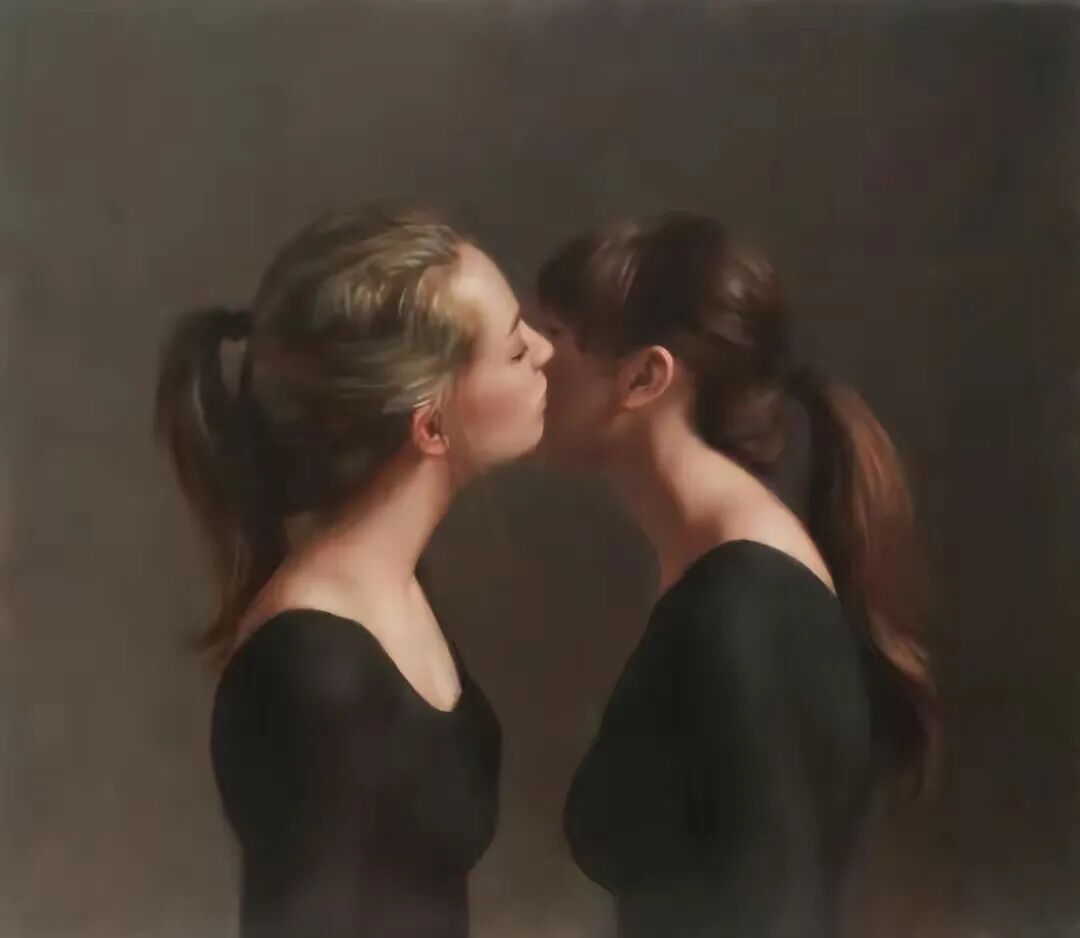 男女之间的关系,如果隔着一层纱,那朦朦胧胧,自然如仙女般美丽迷人,画家在这里可能是在描绘婚外情!但如果走入了婚姻殿堂,那就变成左手换右手,俗不可耐了,不知道男士们是否有这种感觉!
