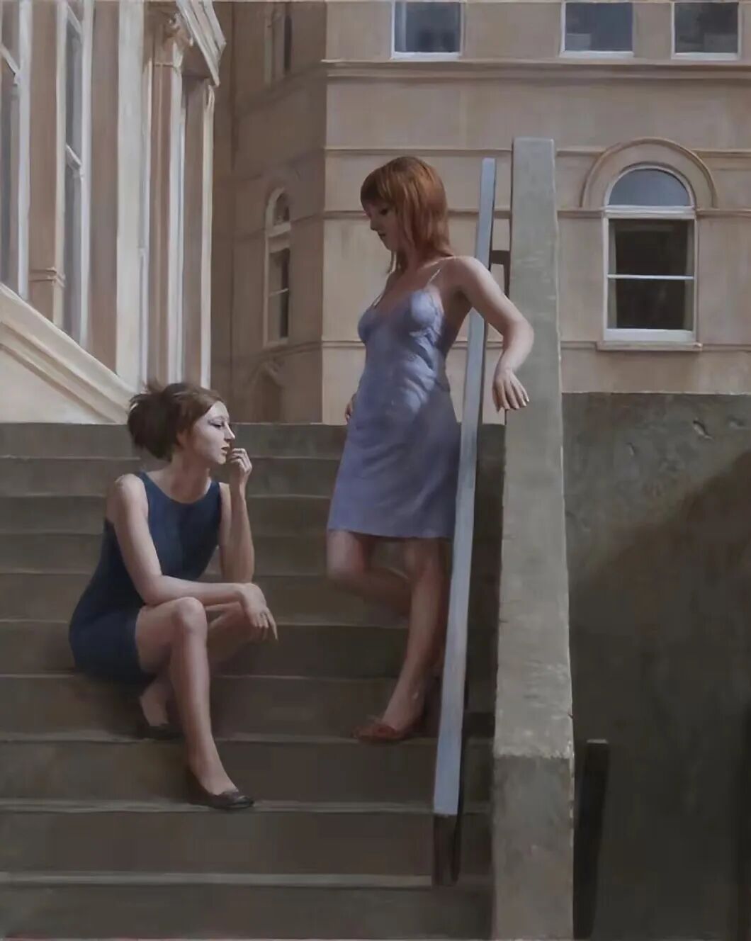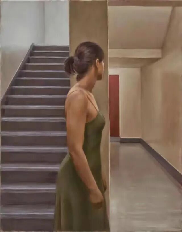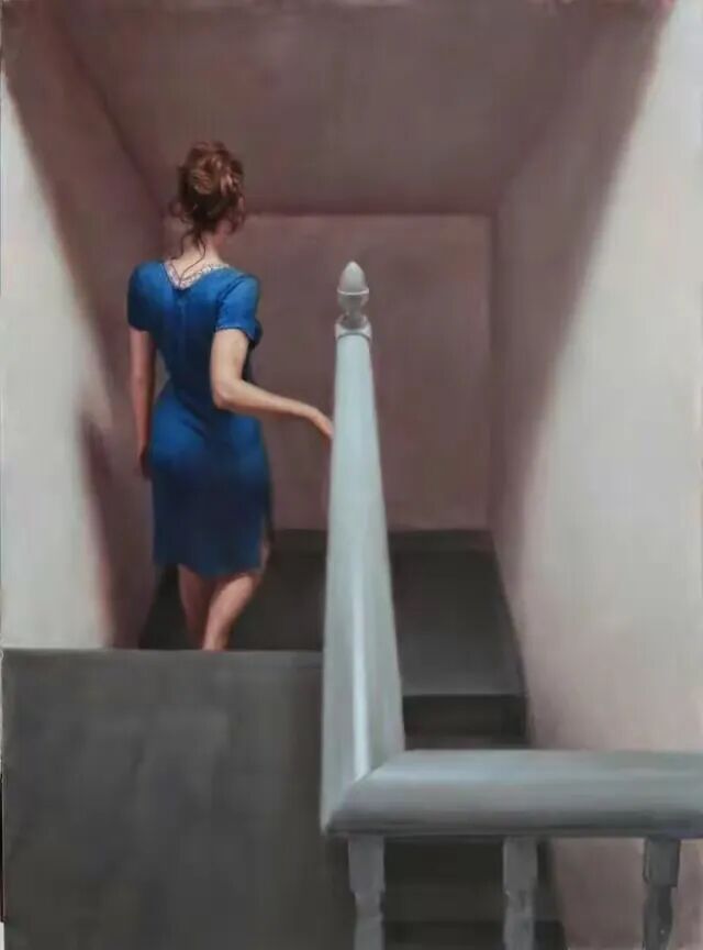 发现这位画家画了很多关于楼梯和女人的画面,这一步步的台阶,让人浮想联翩!想起人生之路就是这么一步步爬上来的,气喘吁吁,有时感觉犹如攀登珠穆朗玛峰一样艰难,一路上得步步留神,防止摔下去!