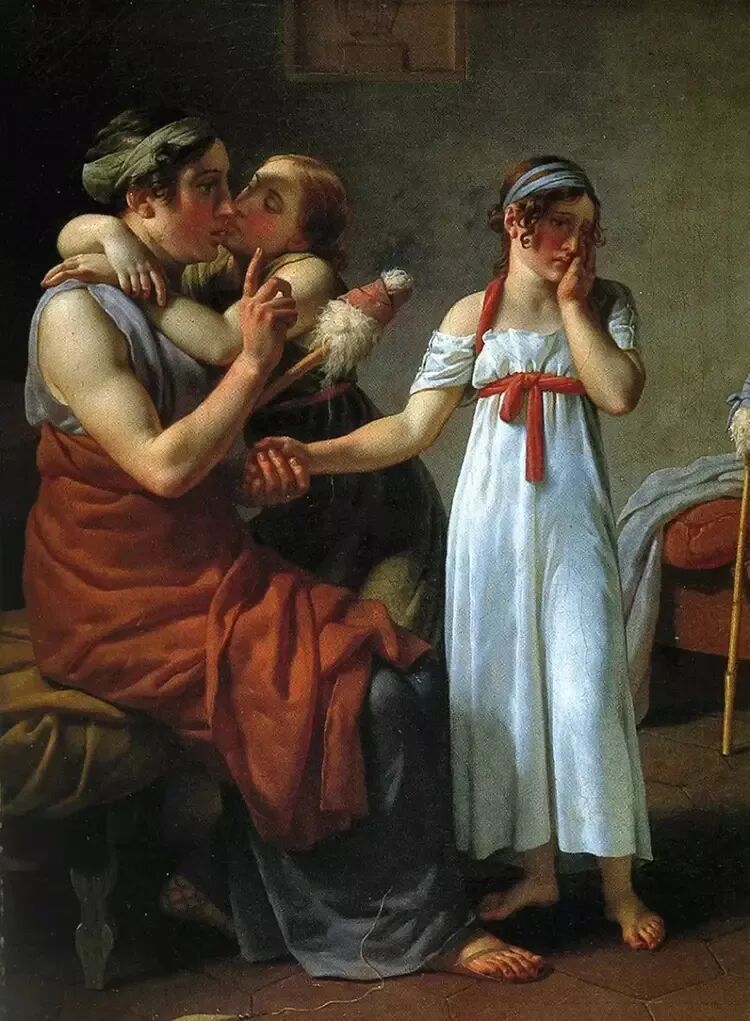 瞧瞧这幅画中的三个人,她们在干嘛,亲得脸蛋这么红,大姑娘害羞了吗!